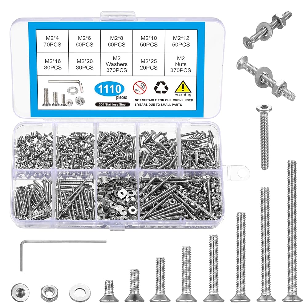 What are the advantages of our flat head screws set? 1. Made of high-quality 304 stainless steel, sturdy and durable for long-term use. 2. Flat-head hex socket screws are clean and precise. The nuts increase the contact area, reducing stress and protecting the screws and parts. 3. All assorted nuts and bolts are properly packaged in storage compartments with matching labels for easy use and installation. 4. Widely used in household and office appliances, marine equipment, machinery, furniture, automotive repair and DIY inventions, industrial and building fasteners, etc.