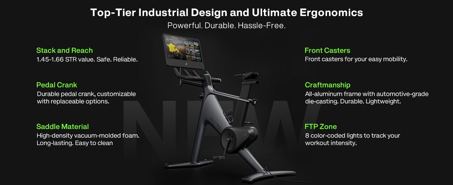 • تصميم صناعي أنيق ومتين - تم تشطيبه بإطار حديث من سبائك الألومنيوم باللون الأسود الكربوني، ويجمع VeloNix بين التكنولوجيا المتطورة والمتانة الصناعية. إنه يوفر قوة ودقة جدية، وهو مثالي لعشاق ركوب الدراجات من المستوى المتوسط ​​الذين يبحثون عن تدريب منظم قائم على النتائج - كل ذلك من راحة المنزل.