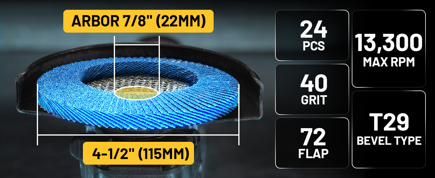 【استخدام واسع】يحتوي القرص ذو الـ 40 حبيبة على هيكل خشن، مما يجعله مثاليًا لإزالة الصدأ الأثقل. القرص ذو القلاب 4.5 للمعادن والفولاذ المقاوم للصدأ والحديد الزهر لإزالة تقوية اللحام وإزالة الأزيز والتلميع وإزالة الصدأ.