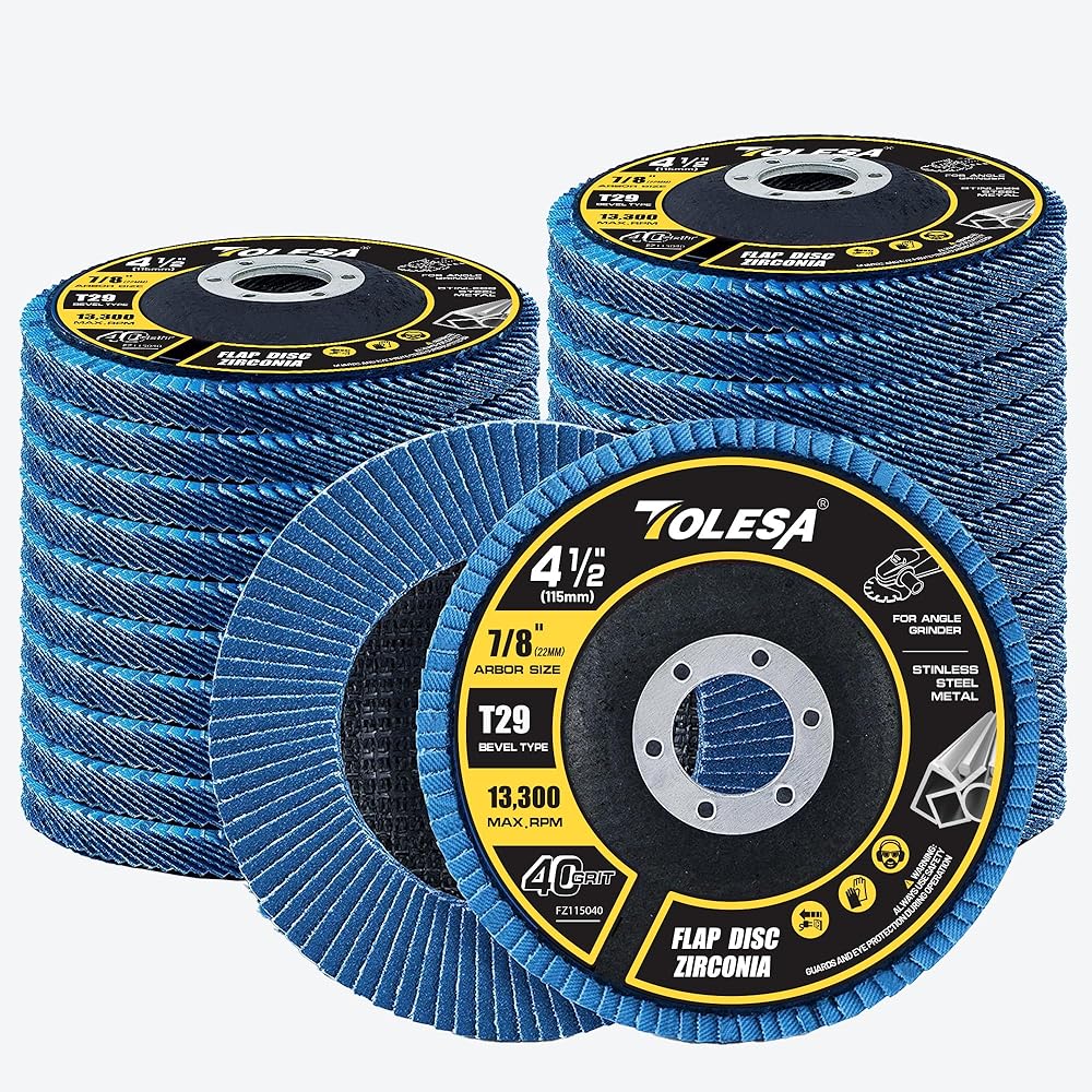 【حبيبات الزركونيا】قرص القلاب TOLESA 4 1/2 مصنوع من جزيئات الزركونيا الزرقاء عالية الجودة، مما يضمن القوة والمتانة وعمر العجلة الطويل. عمر عجلة الطحن هو ضعف عمر الألومينا، وسرعتها أسرع بثلاث مرات من الألومينا.