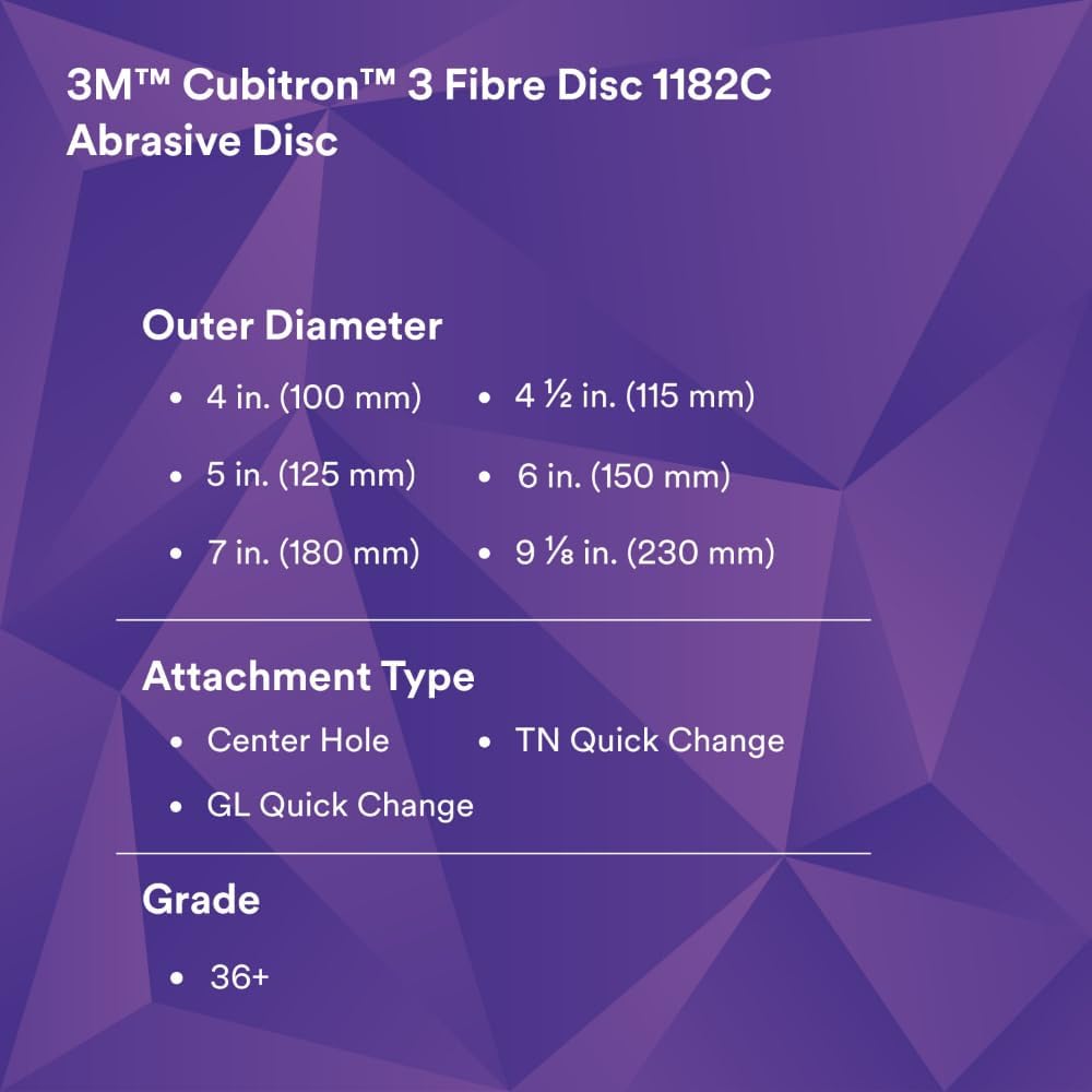 A WHOLE NEW CUT LEVEL: Delivers up to 51% faster initial cut rate and up to 61% faster sustained cut rate compared to the 3M Cubitron II Fibre Disc 982C, 36+