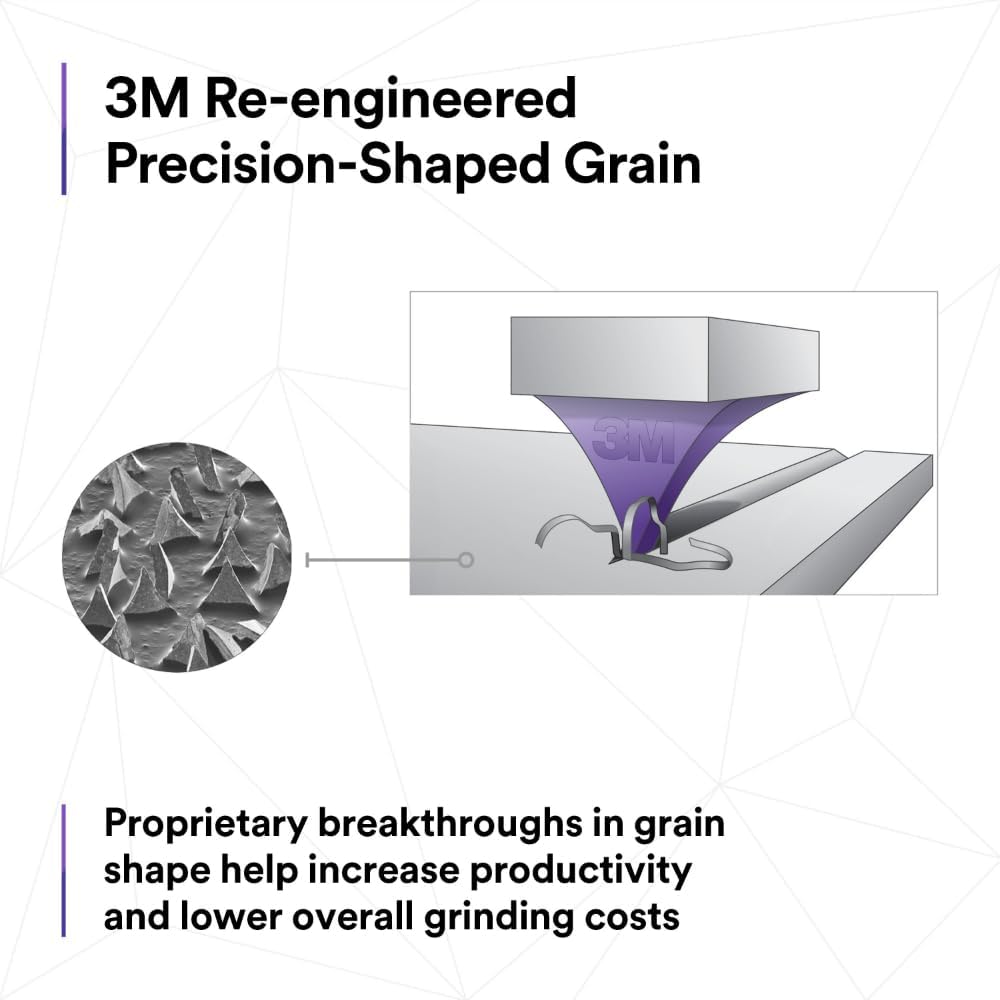 RE-ENGINEERED 3M PRECISION-SHAPED GRAIN: Uses Re-Engineered Precision Shaped Grain, a proprietary technology designed with sharp, angular structures that continuously fracture to form sharp points to wear evenly, run cool, and optimize mineral breakdown