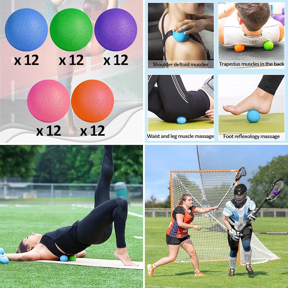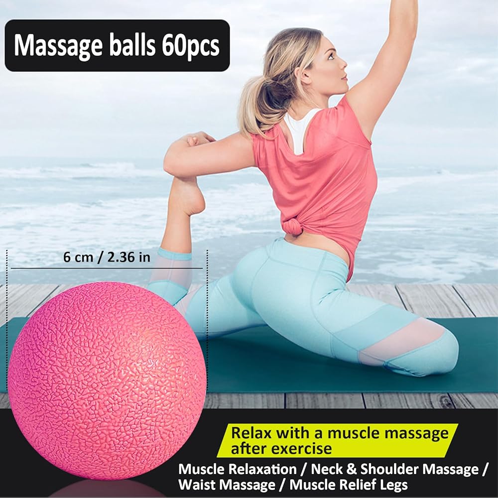 Lacrosse Balls Set 60 Packs 2.36 inch Massage Ball, Myofascial Release Tool, Back Roller, Muscle Knot Remover