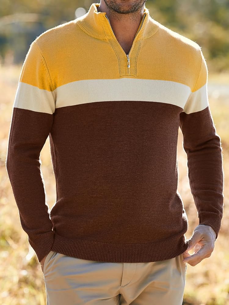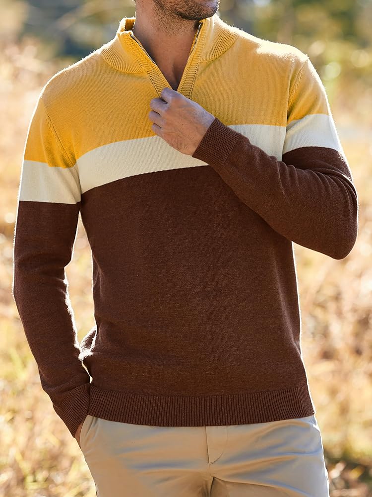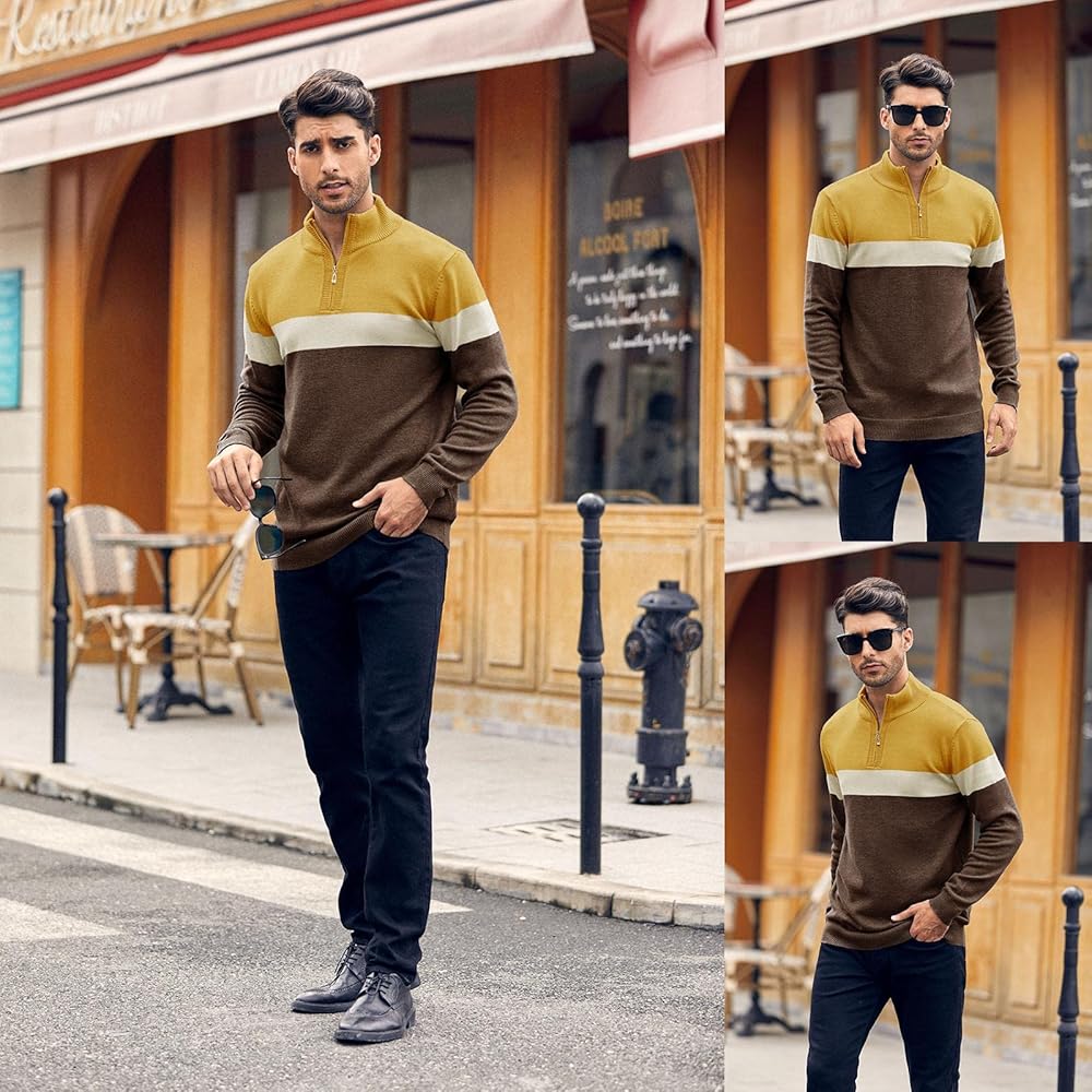 ◀سترات عصرية للرجال: بلوفر كاجوال بأكمام طويلة للرجال، سحاب إغلاق، ياقة بسحاب ربع، رقبة وهمية حرارية، كم طويل، نمط تصميم مخطط فريد من نوعه، مقاس عادي لقفل الدفء، حافة مضلعة، نمط ترفيهي، كلاسيكي وعصرية، تمزج بين الطراز الحديث والتقليدي لتجسيد وسام وثقة أزياء الرجال