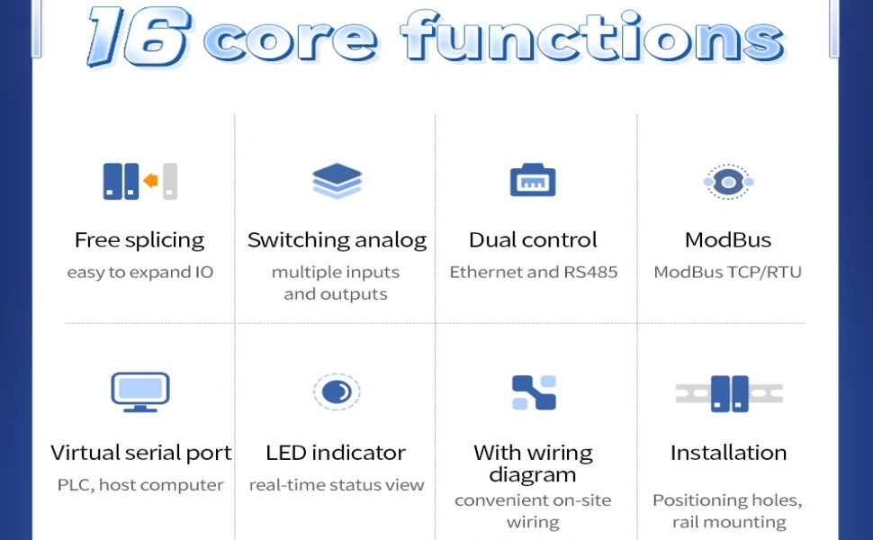 يدعم مضيف IO الموزع من سلسلة M31 بروتوكول Modbus TCP وبروتوكول Modbus RTU للتحكم في الاستحواذ. يدعم الجهاز الوصول المتزامن لـ 5 عملاء ويدعم رموز الوظائف 01/02/03/04/05/06/15/16. المنتج يعتمد تصميم قابل للتطوير في الهيكل.