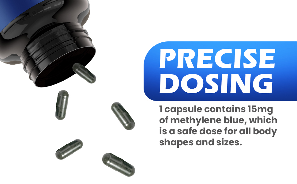 15 ملجم لكل جرعة - استخدام يومي مريح: توفر كل جرعة 15 ملجم من أزرق الميثيلين في كبسولات سهلة التناول - بدون قياس، بدون فوضى، فقط دعم يومي بسيط.