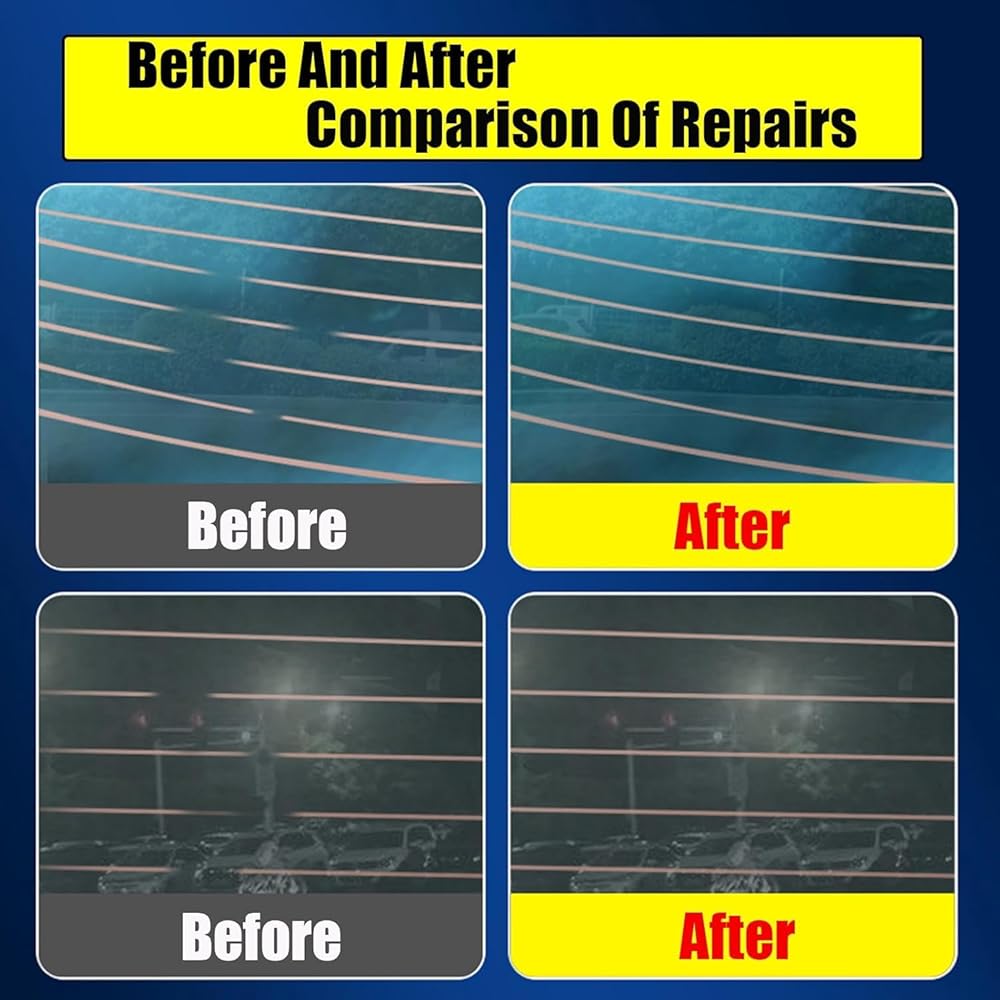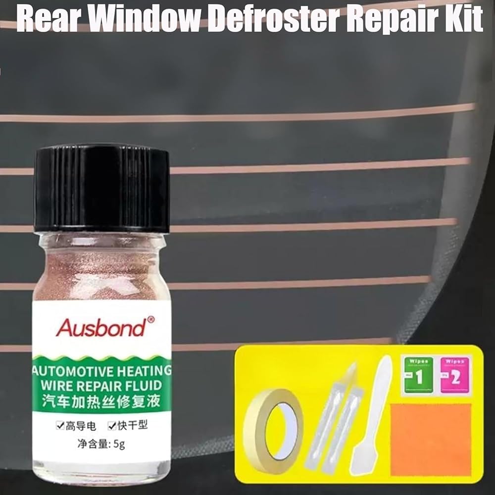 طقم إصلاح مزيل الصقيع من الزجاج الخلفي ** لمسة نهائية شفافة تمامًا ** طقم إصلاح مزيل الصقيع لنافذة السيارة - يجف إلى أثر نحاسي رفيع وغير مرئي تقريبًا يمتزج بسلاسة مع خطوط مزيل الصقيع الموجودة. غراء موصل كهربائي لإصلاح الأسلاك