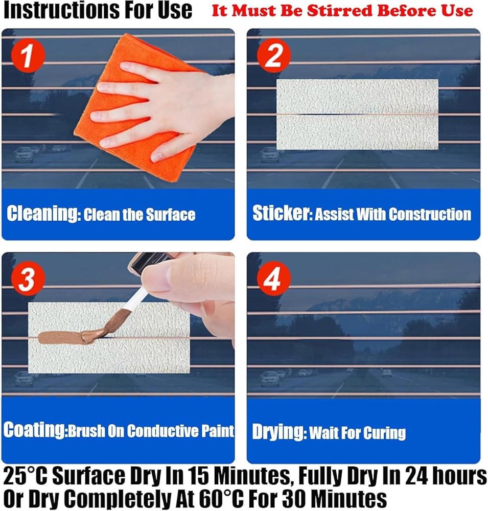 طلاء حماية موصل ** تطبيق محدد ** طقم إصلاح إزالة الصقيع - أداة تطبيق ذات طرف رفيع توفر وضعًا دقيقًا على خطوط الشبكة المكسورة، مما يمنع الانسكاب الفوضوي ويحافظ على نقاء الزجاج. طقم إصلاح مزيل الضباب للنافذة الخلفية