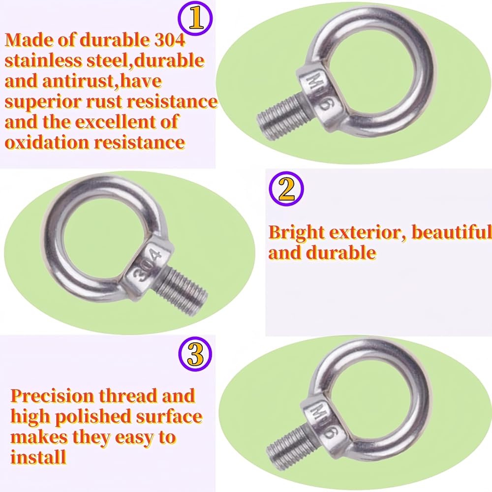 Easy to Install:The eye bolt which surface is smooth,Precision thread and high polished surface makes they easy to install<br>