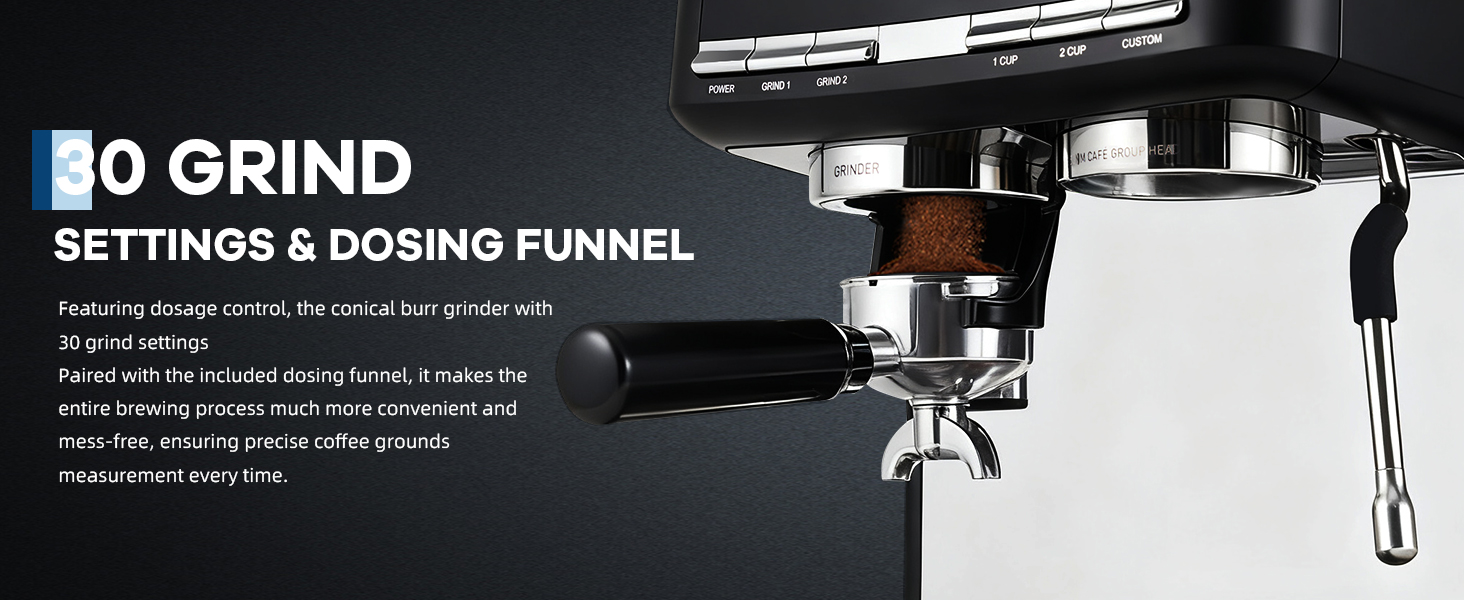 طحن وحجم طلقة قابلان للتخصيص - قم بتخصيص مشروبك بسهولة مع وقت طحن قابل للتعديل وإعدادات حجم طلقة واحدة/مزدوجة، مما يضمن تجربة قهوة غنية ومخصصة بشكل مثالي. سواء كنت تفضل جرعة واحدة قوية أو جرعة مزدوجة جريئة، يمكنك تعديل الماكينة بسهولة لتناسب ذوقك - بدءًا من القهوة الغنية الغنية كاملة القوام وحتى اللاتيه الناعم. مثالية لصانعي القهوة في المنزل الذين يتوقون إلى التحكم في كل تفاصيل طقوس القهوة الخاصة بهم.