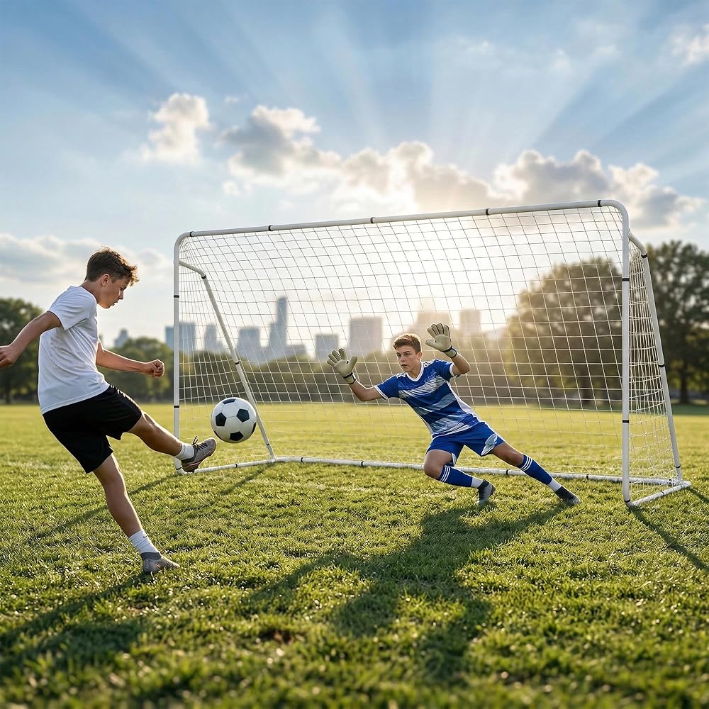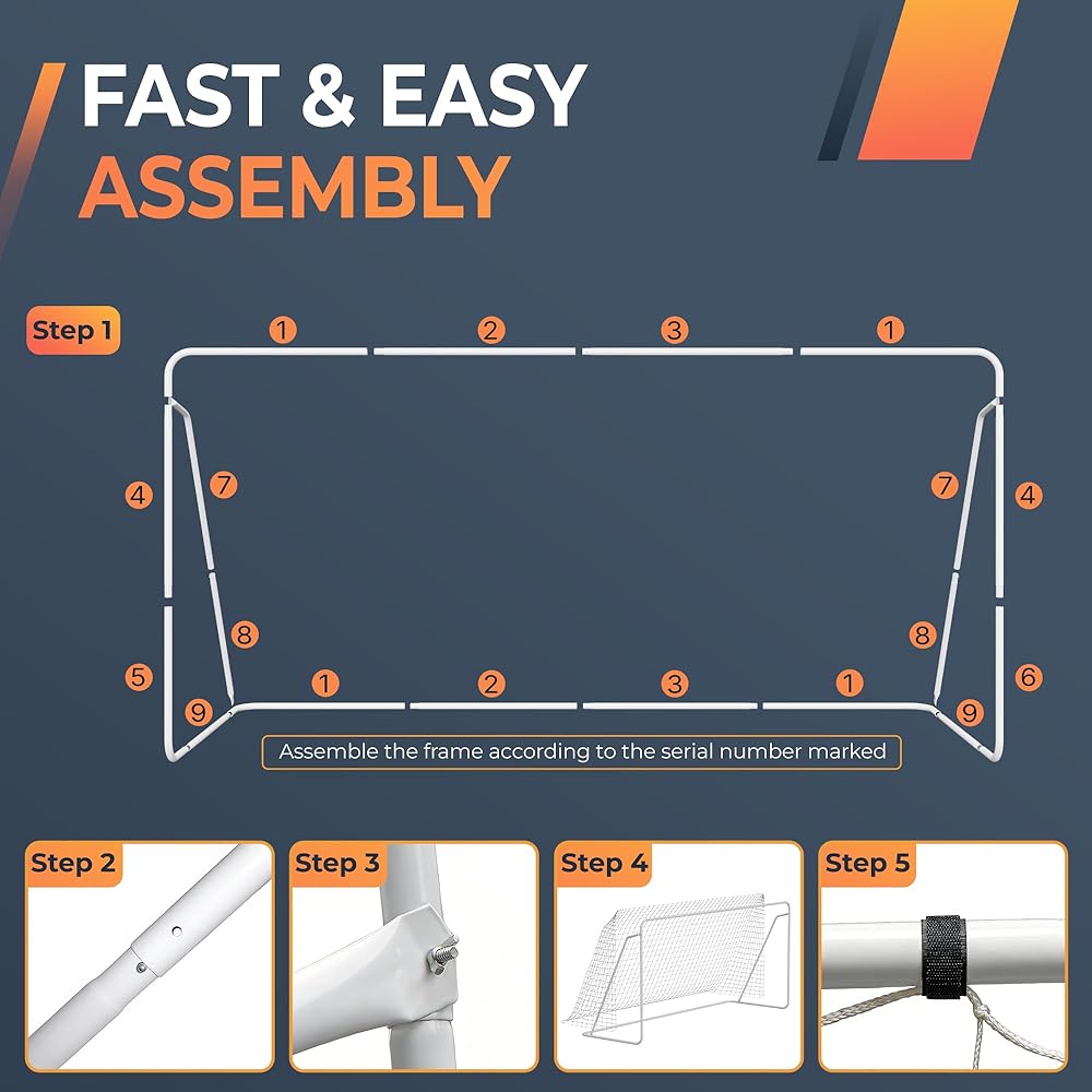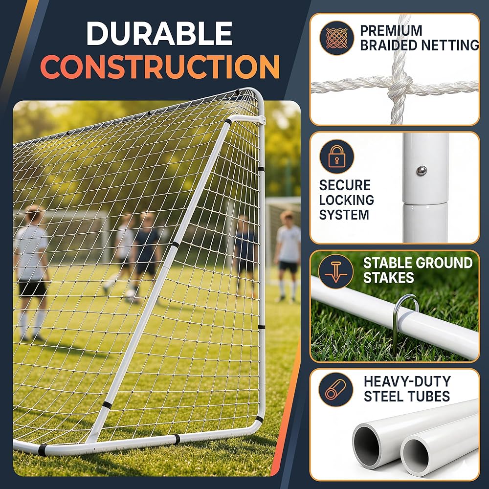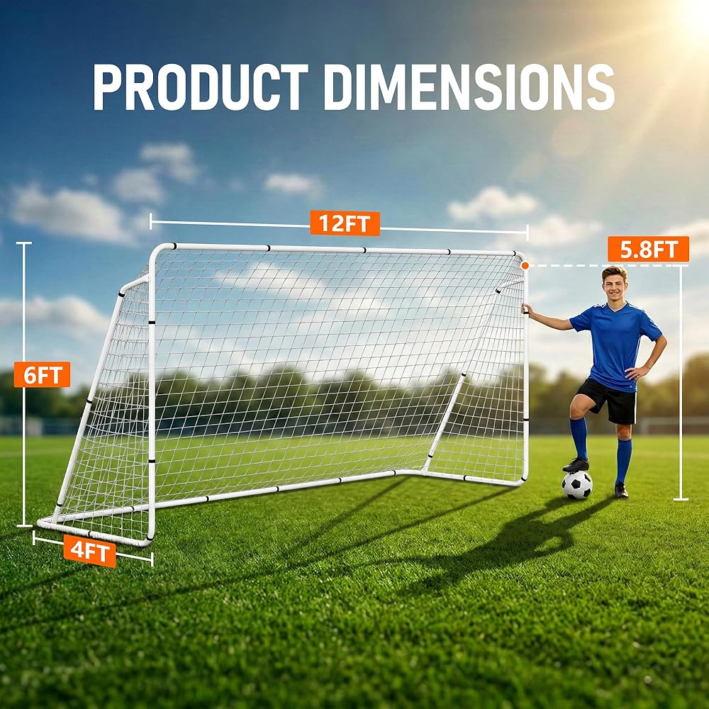 【سهلة الإعداد】- يبلغ مقاسها 12 × 5 × 6 أقدام (عرض × عمق × ارتفاع)، الأنابيب: 1.25 بوصة (قطر). تم تصميم مجموعة أهداف كرة القدم هذه لإعداد بسيط وخالي من الإجهاد. هدف كرة قدم خارجي لممارسة كرة القدم في الفناء الخلفي مع العائلة والأصدقاء.
