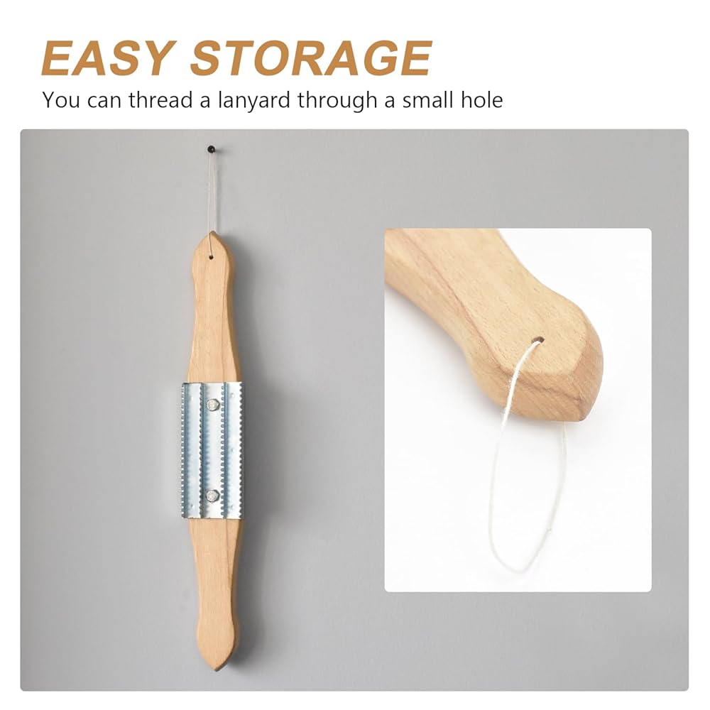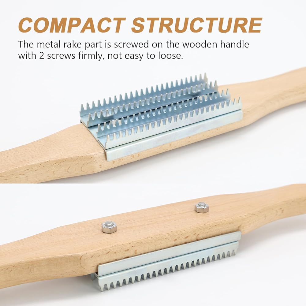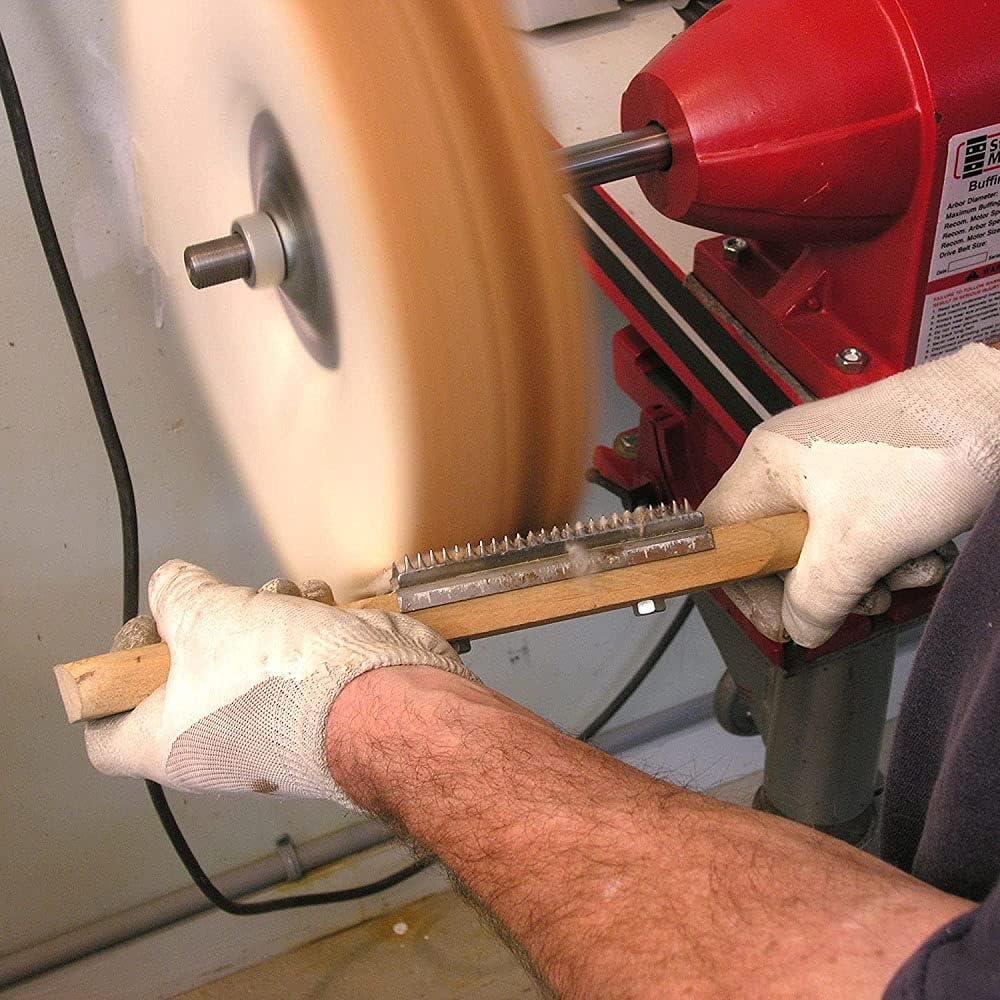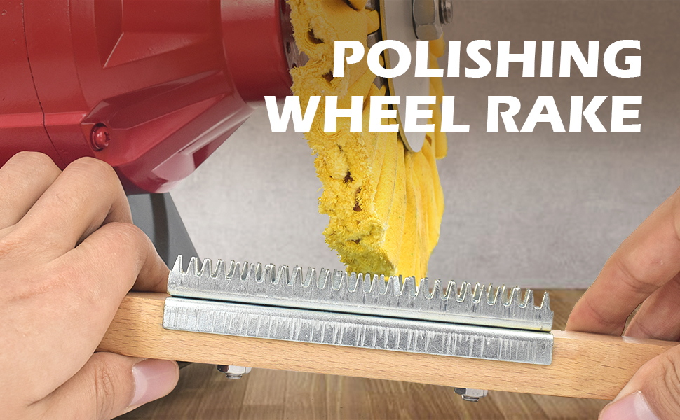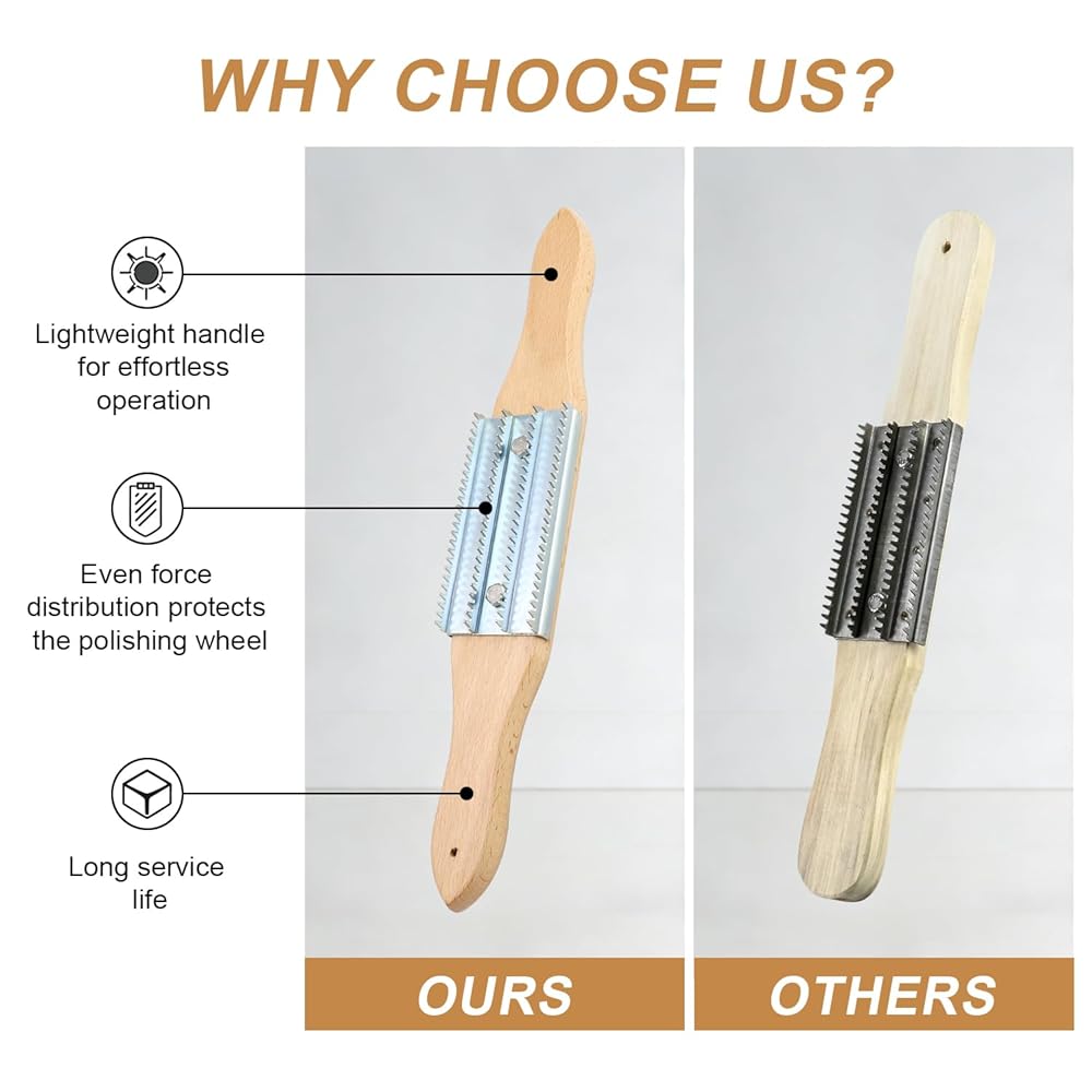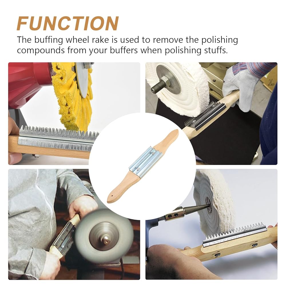 مشط عجلة التلميع - مشط مركب تلميع بمقبض خشبي، منظف عجلة التلميع لإزالة المركب، عبوة واحدة باللون الفضي