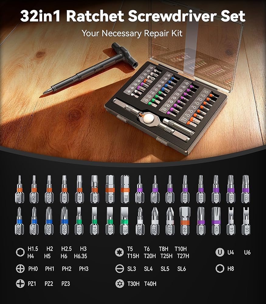 [استبدال أداة الكل في واحد: قطع الفوضى وتوفير المال] مجهزة بـ 32 لقمة فولاذية فاخرة من سبائك S2 (تناسب توركس وفيليبس ومسطحة وسداسية وغيرها من أنواع البراغي الشائعة) ومقبض متعدد الأوضاع قابل للتحويل، تحل هذه المجموعة محل مفكات البراغي المستقلة والمفاتيح وقضبان التمديد. تخلص من صندوق الأدوات الفوضوي، واستمتع بحل تخزين خالٍ من الفوضى يلغي الحاجة إلى شراء أدوات متعددة تستخدم لمرة واحدة، وهو مثالي لكل منزل ومساحة للأعمال اليدوية.
