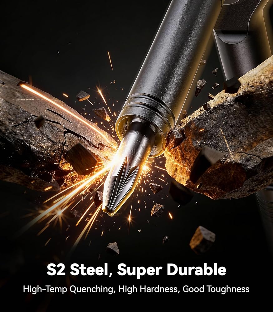 [لقم فولاذية S2 مقاومة للتجريد وفائقة المتانة: مصممة لتدوم طويلاً] تتميز لقم الفولاذ S2 بتصنيف صلابة يصل إلى HRC60، مما يوفر عمر خدمة أطول 3 مرات من لقم الفولاذ الكربوني العادي. تمنع الأطراف المصنعة بدقة من التجريد والتآكل، بينما تحمل المغناطيس القوي البراغي الصغيرة بشكل آمن (لا مزيد من سقوط الأجزاء في الفجوات التي يصعب الوصول إليها). ثق بهذه القطع للتعامل مع التحسينات المتكررة للمنزل وبناء الأثاث لسنوات قادمة.