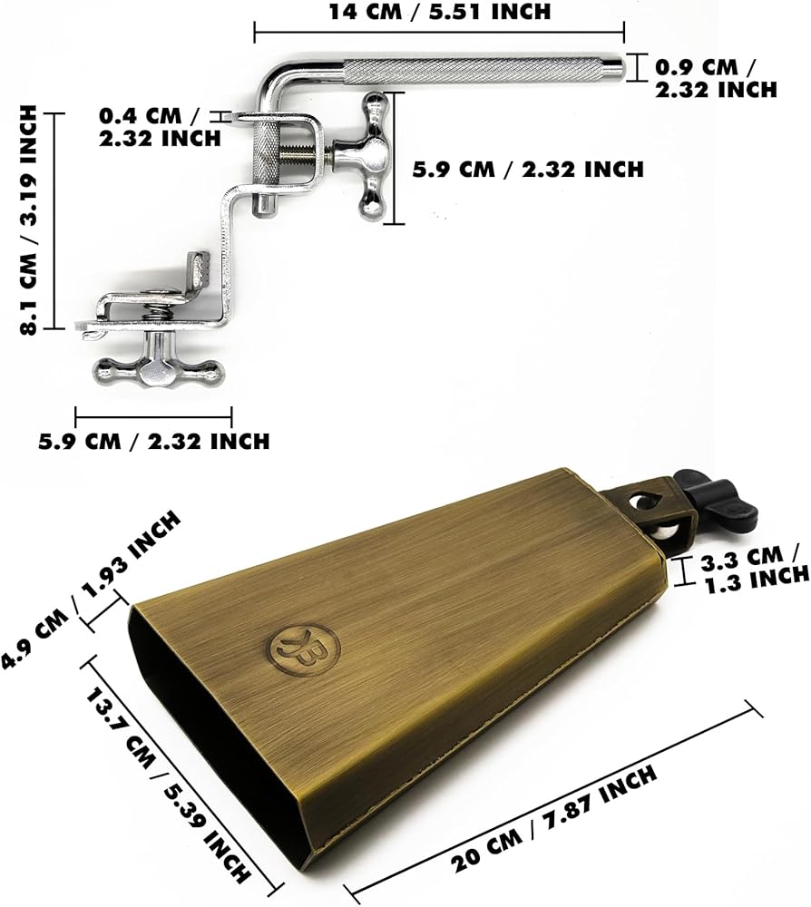 • 【Complete Mounting Versatility】 Every Beatello cowbell comes with a multi-functional bass drum mount and percussion stand. Easily clip it to your bass drum hoop, mount it on a cymbal stand, or use it handheld. It is designed to integrate seamlessly into any drum set or percussion rig.