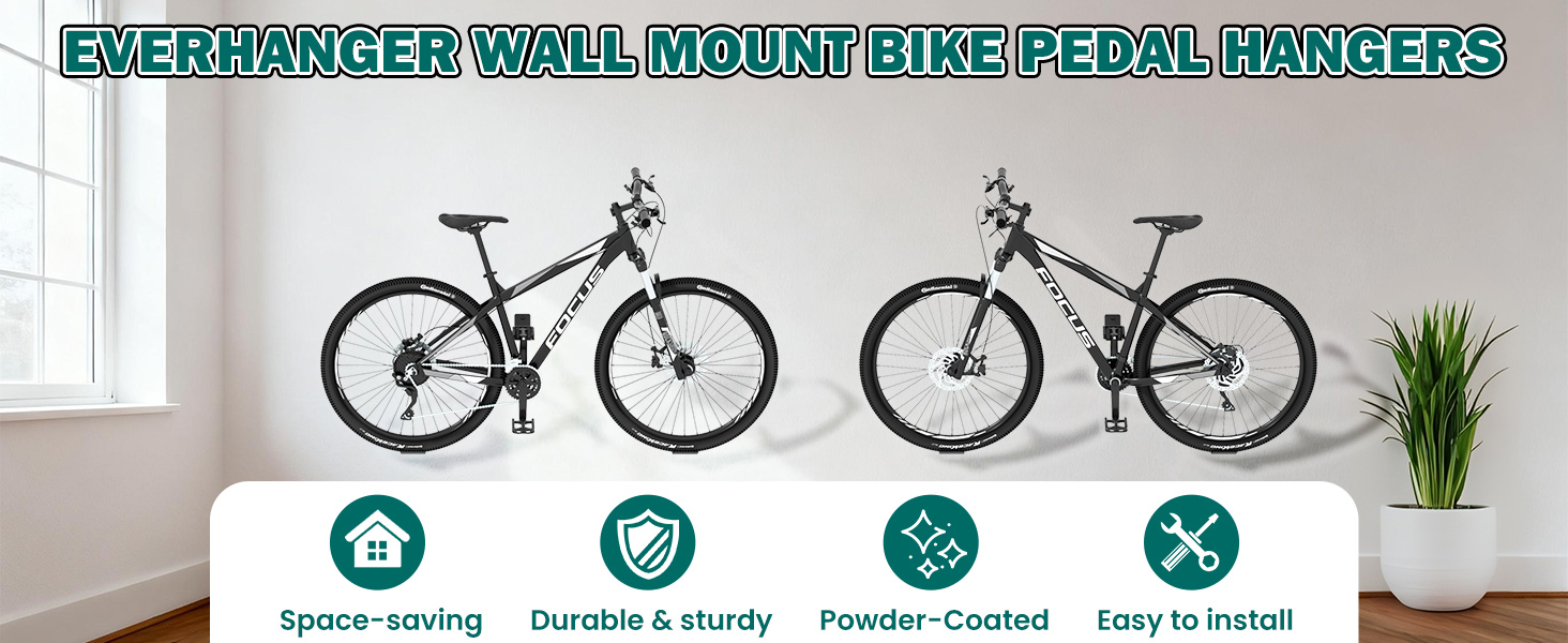 تصميم موفر للمساحة: قم بتعليق الدراجات أفقيًا عبر حوامل الدواسة لتحرير مساحة أرضية قيمة. وهذا يحافظ على الدراجات بعيدًا عن الطريق، ويمنع الاصطدامات، وينظم المرآب الخاص بك دون عناء للحصول على مساحة أنيقة ومنظمة