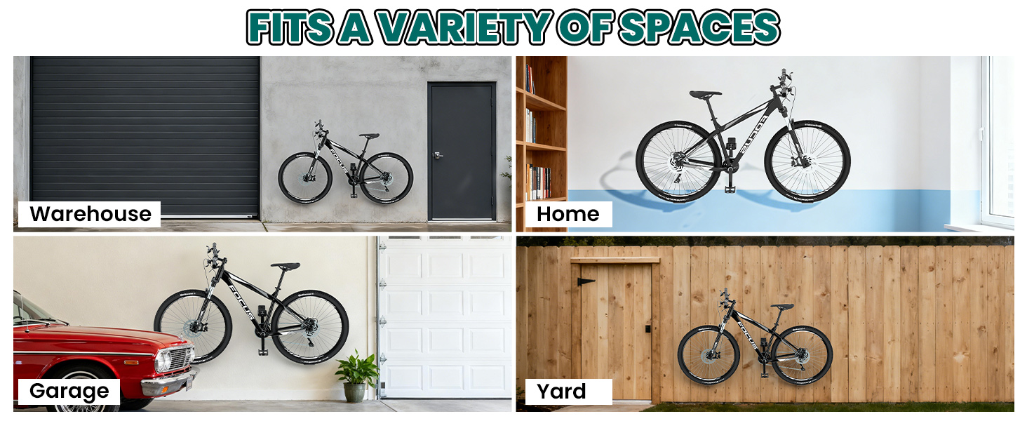 يناسب أنواع الدراجات المتعددة: يعمل تصميم الدواسات العريضة مع الدراجات الجبلية ودراجات الطرق ودراجات المدينة والمزيد. يناسب أحجام الدراجات المختلفة، مما يوفر تخزينًا أو عرضًا آمنًا وخاليًا من الأضرار في الشقق والمكاتب والجراجات والمساحات الأخرى