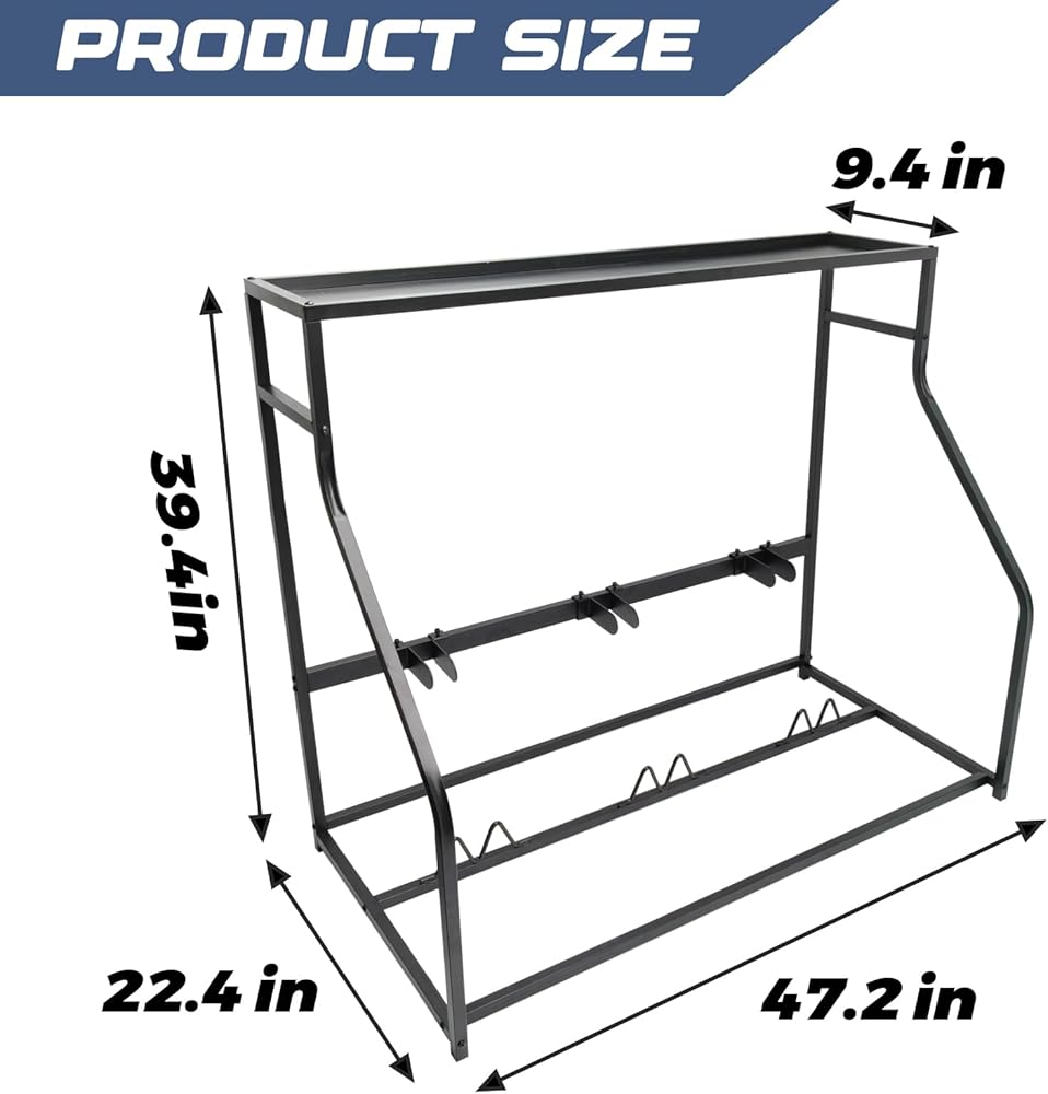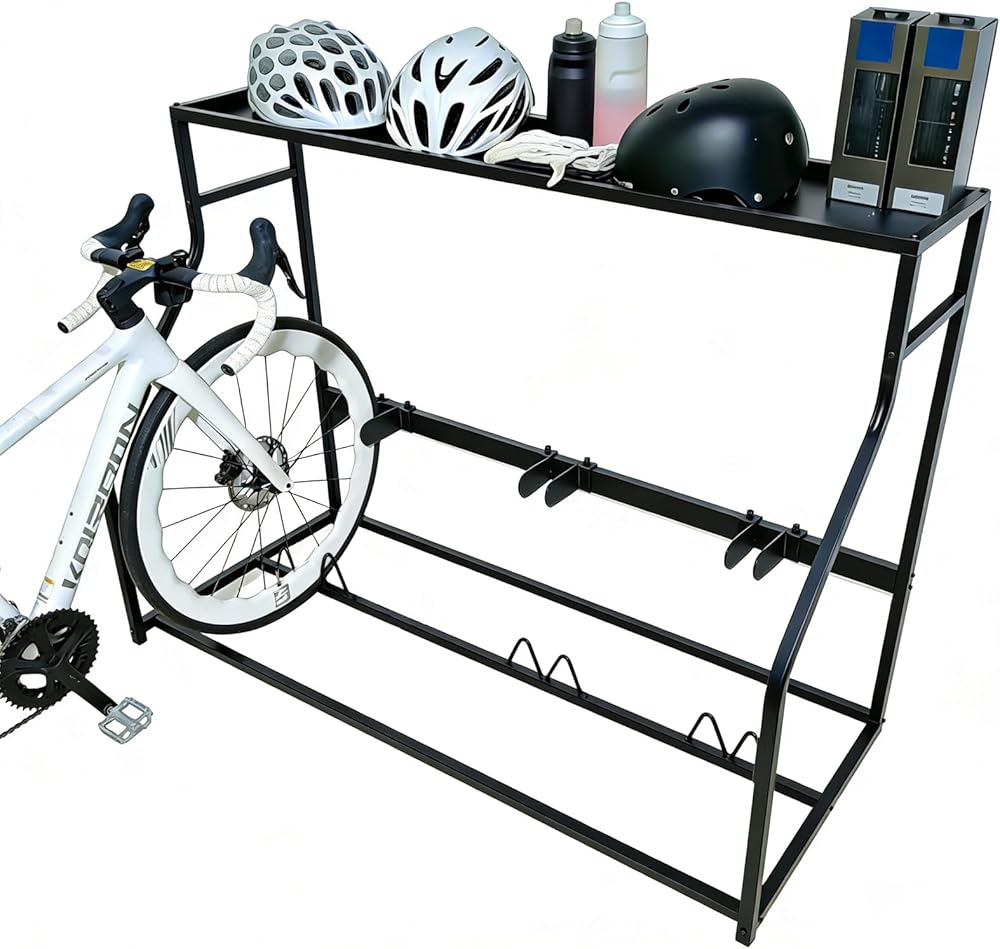 شديد التحمل ومقاوم للصدأ: البناء مصنوع من الفولاذ المجلفن عالي الجودة مع طلاء أسود، رف تخزين الدراجة هذا قوي ومتين ومقاوم للتآكل ومقاوم للصدأ للاستخدام الداخلي والخارجي طويل الأمد.