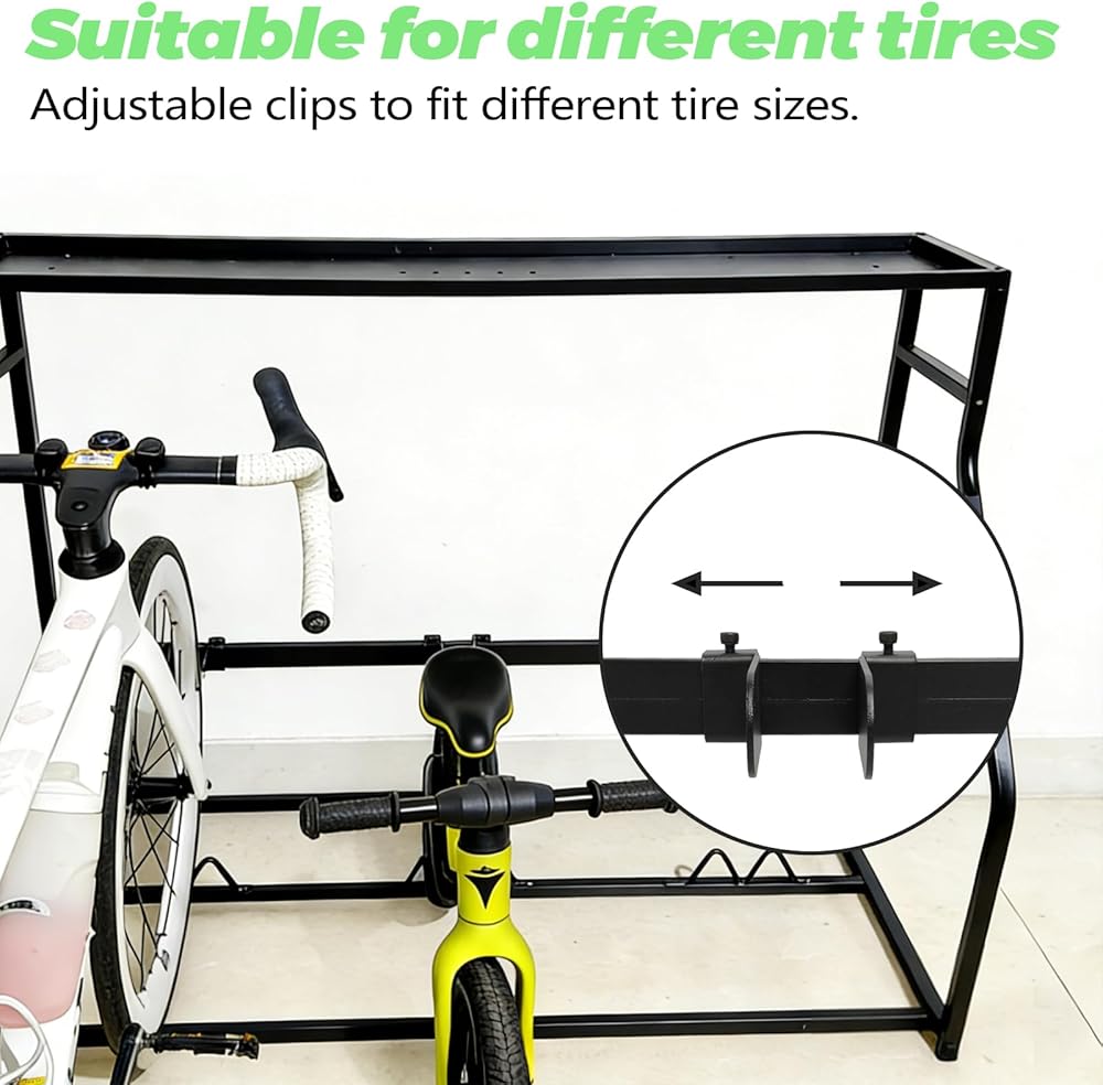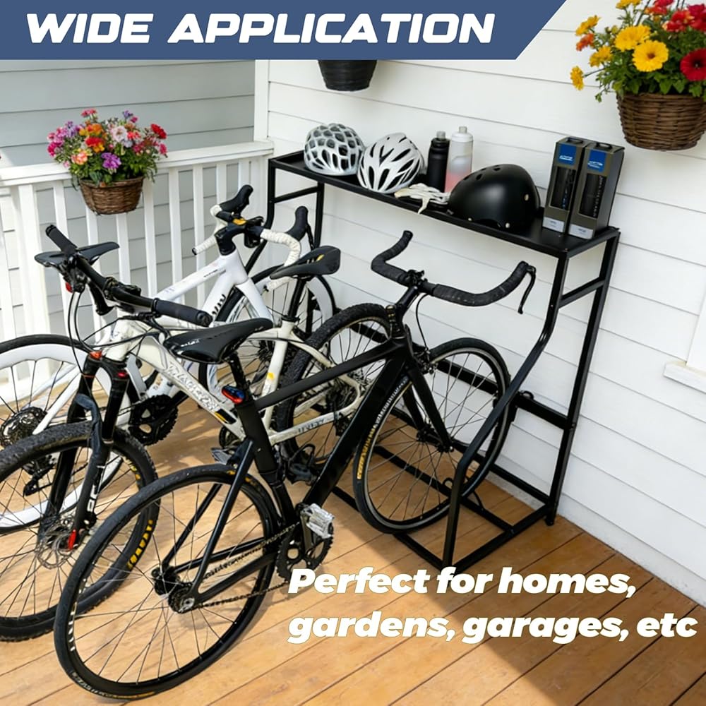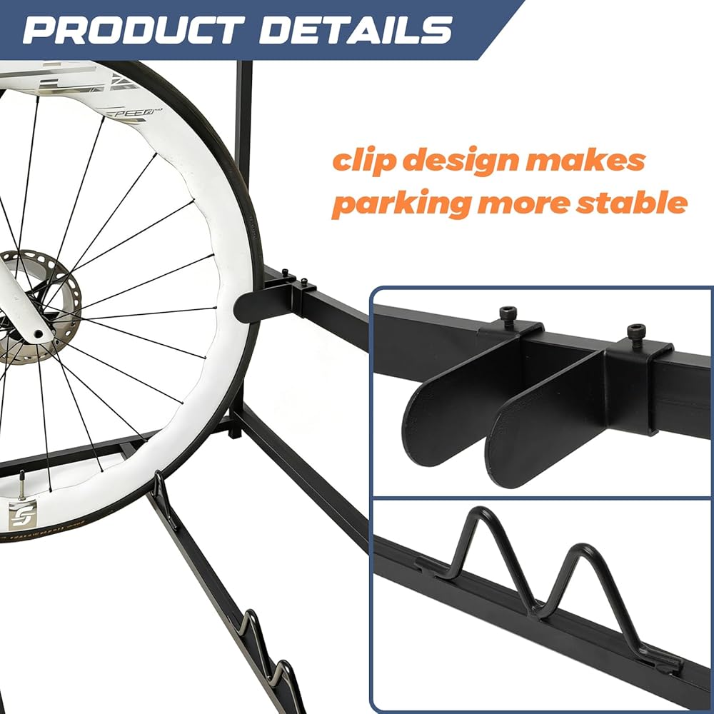 سعة كبيرة وتوفير المساحة: هذا الحامل الأرضي المكون من 3 دراجات يحمل بكفاءة ما يصل إلى 3 دراجات دون ازدحام، مما يساعدك على تنظيم منزلك أو جراجك أو مساحتك الخارجية والحفاظ على منطقتك نظيفة ومرتبة