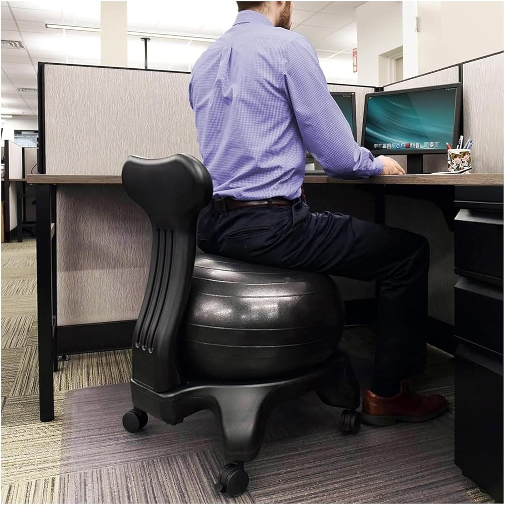 The OneGrifN Yoga Ball Chair is a versatile and ergonomic solution that strengthens core muscles, aligns the spine, and relieves hip, back, and neck pain. Made of sturdy materials, this yoga ball chair is comfortable for people of all sizes. The chair has a simple assembly process and can be used with the ball alone for convenience and comfort. Combining the best of an exercise ball with a rolling base, this chair is designed to provide both fitness and comfort benefits. Whether used in the office, home, or classroom, the OneGrifN Yoga Ball Chair fits most standard height desks and is suitable for adults of all ages. Elevate your sitting experience and improve your overall health with the OneGrifN Yoga Ball Chair.