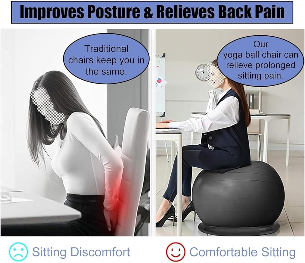 2. Stability and safety: Our yoga ball chair is made of thickened explosion-proof good-quality materials, with a textured non-slip surface to ensure user safety, while the sturdy frame ensures stability and durability