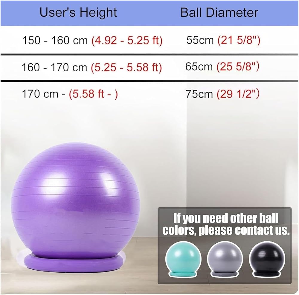 Ball Diameter: 55 cm ( 21 5/8" ) 65 cm ( 25 5/8" ) 75 cm ( 29 1/2" )