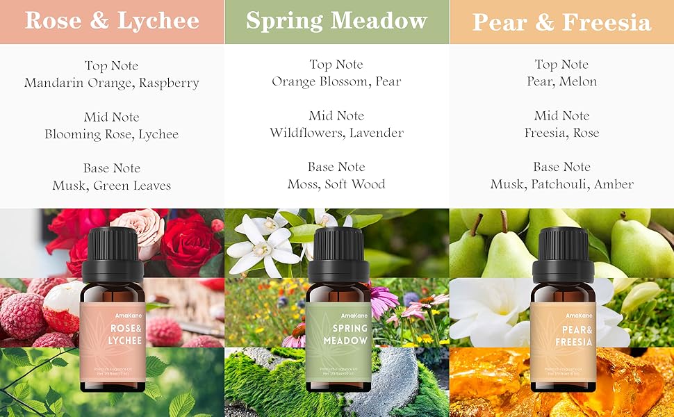 زيت عطر أماكان الربيع، روائح زيت الناشر، روائح الشموع لصنع الشموع، روائح صنع الصابون، الورد والليتشي، نسيم الزهور البرية، الأخضر الطازج، الكمثرى والفريزيا، المزيد من الزيوت العطرية