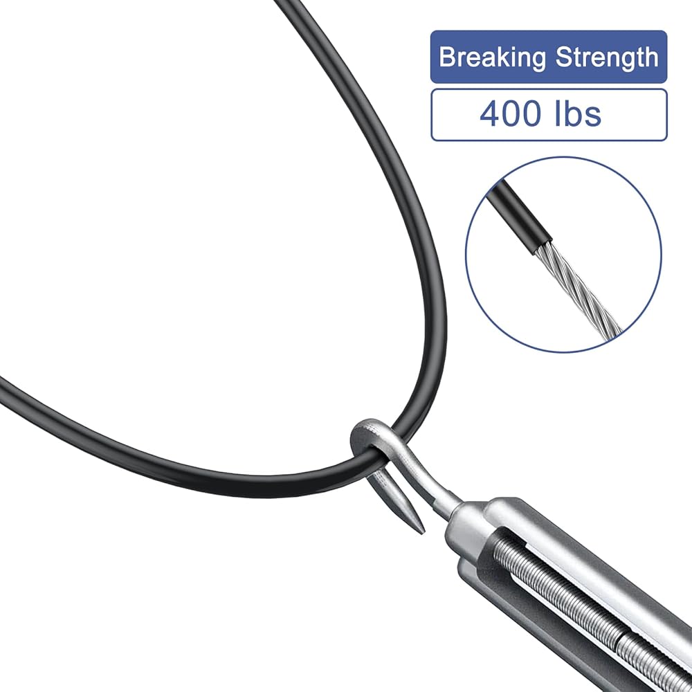 قوة موثوقة للاستخدام الآمن: تم تصميمها بقوة كسر لا تقل عن 380 رطلاً، وتضمن مجموعة الحبال السلكية أداءً موثوقًا لمهام التعليق الخفيفة. سواء كنت تدعم الأدوات الصغيرة أو تؤمن الأغراض اليومية، فإن قلبها الفولاذي القوي يضمن الاستخدام الآمن والمستقر في الداخل والخارج.