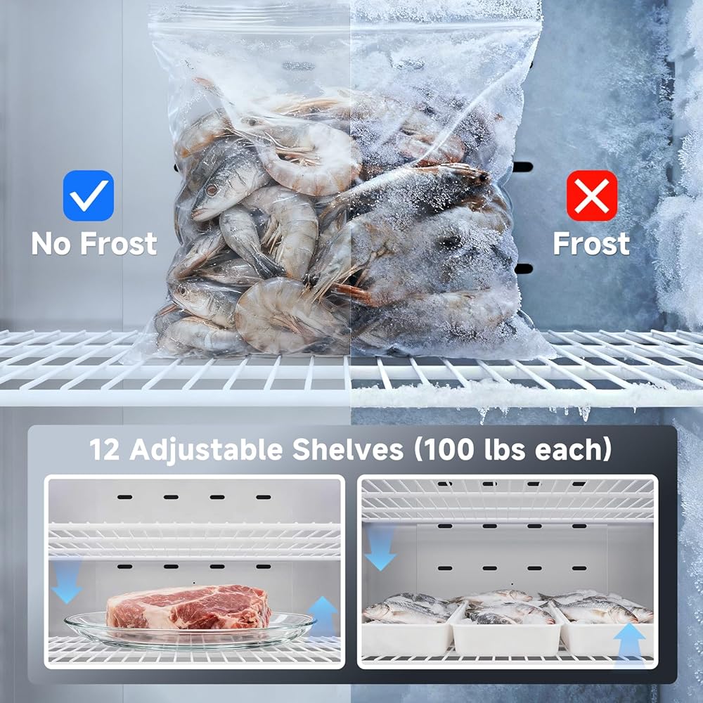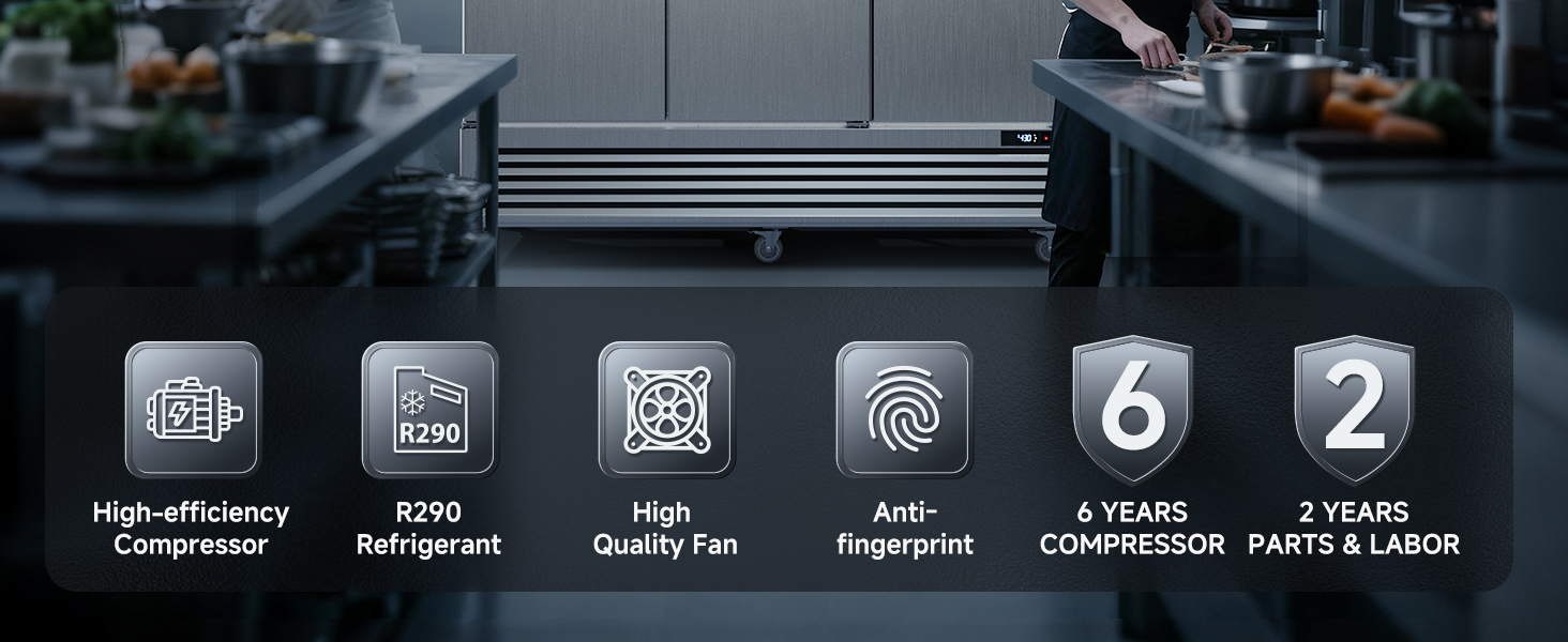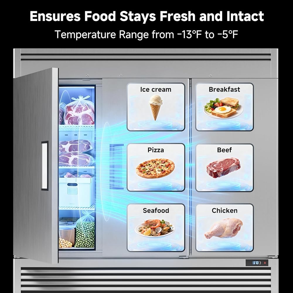 التحكم البديهي في درجة الحرارة: تم تصميم الوحدة لتعزيز إمكانية مراقبة وتشغيل الفريزر التجاري، حيث تدمج الوحدة ميزة عدم التجمد الكاملة والتحكم الرقمي في درجة الحرارة لسهولة الاستخدام. تمت برمجة التحكم الرقمي في درجة الحرارة للحفاظ على درجات الحرارة بين -13 درجة فهرنهايت و-5 درجة فهرنهايت، مما يضمن تخزين جميع المنتجات الغذائية بأمان والحفاظ على نضارتها وسلامتها