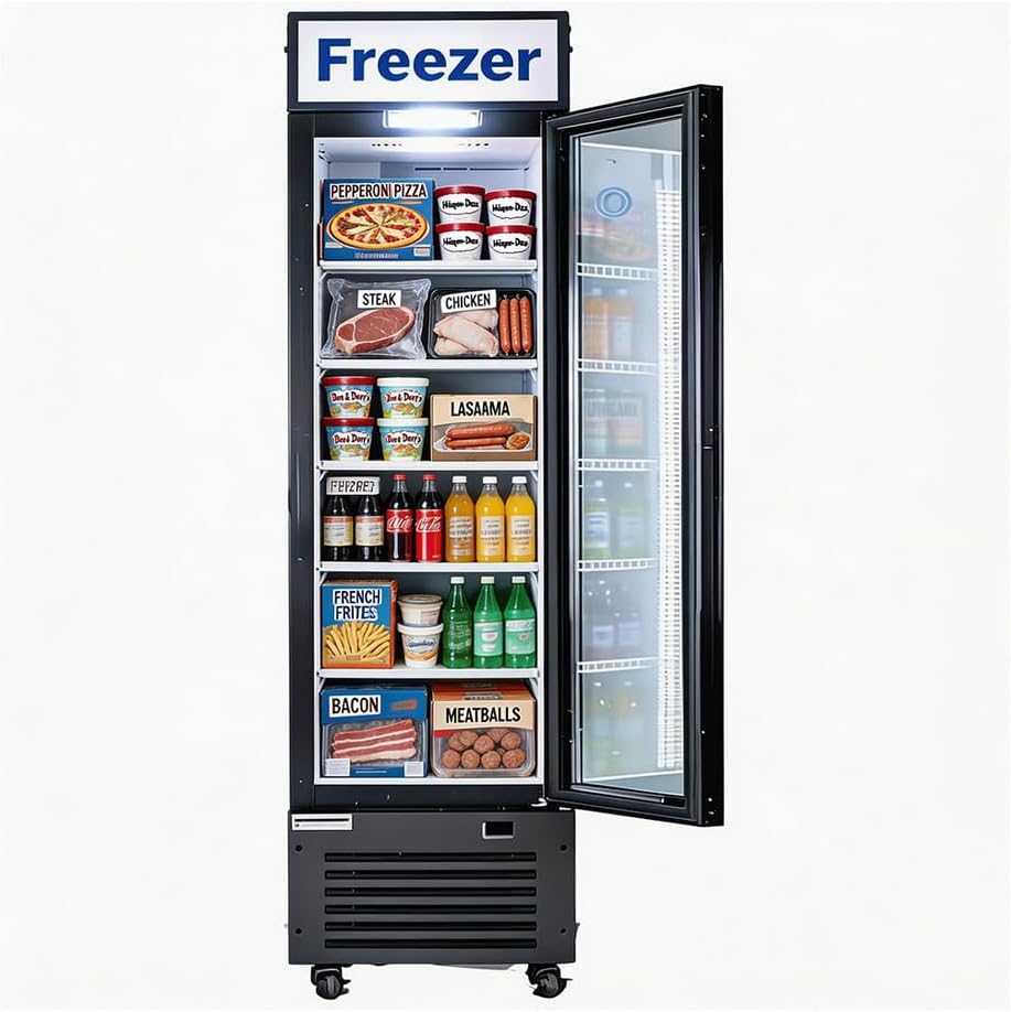 فريزر المشروبات التجارية، تجميد عرض الآيس كريم بباب زجاجي واحد وتجميد تاجر الحلوى المجمدة، فريزر عرض دينك قائم لمطعم البار، موافقة ETL، عرض 16.2 بوصة، 7 قدم مكعب