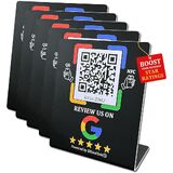 【تصميم أنيق】تتميز اللافتة بتصميم واقف، وهو سهل تحريكه ووضعه. يصل الحجم إلى 5.51*4.72 بوصة، وهو أمر ملفت للنظر للغاية. المادة مصنوعة من مادة بلاستيكية راقية، مما يسلط الضوء على الجودة العالية لعلامتك التجارية. يتيح تصميم ملف NFC الكبير ورمز الاستجابة السريعة للمستخدمين الدخول إلى صفحة متجرك بشكل أكثر سلاسة لإجراء التقييمات.