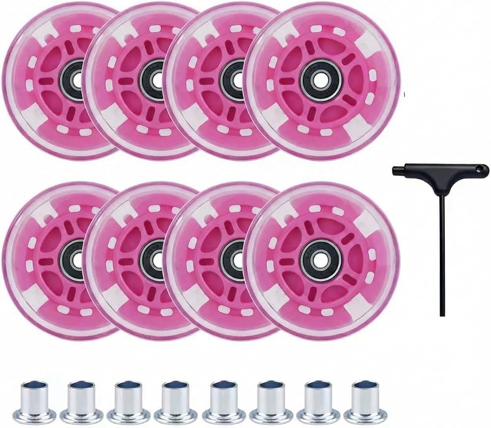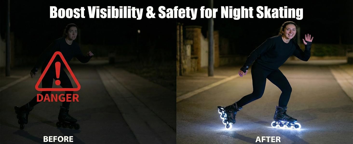 【تصميم وامض خالٍ من البطاريات - آمن وممتع】تتميز عجلات التزلج المضمنة المضيئة لدينا بمصابيح LED تعمل بالحركة والتي تومض بألوان زاهية متعددة أثناء التزلج - لا حاجة إلى بطاريات! يعزز التأثير المتوهج الرؤية من أجل سلامة التزلج الليلي ويضيف متعة لا نهاية لها للأطفال والشباب، مما يجعل كل جلسة تزلج مثيرة. ترقية مثالية لعجلات التزلج المضمنة الخاصة بك!