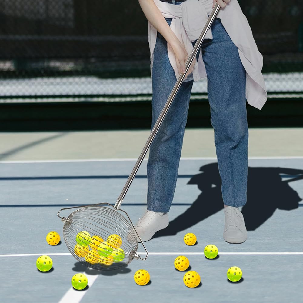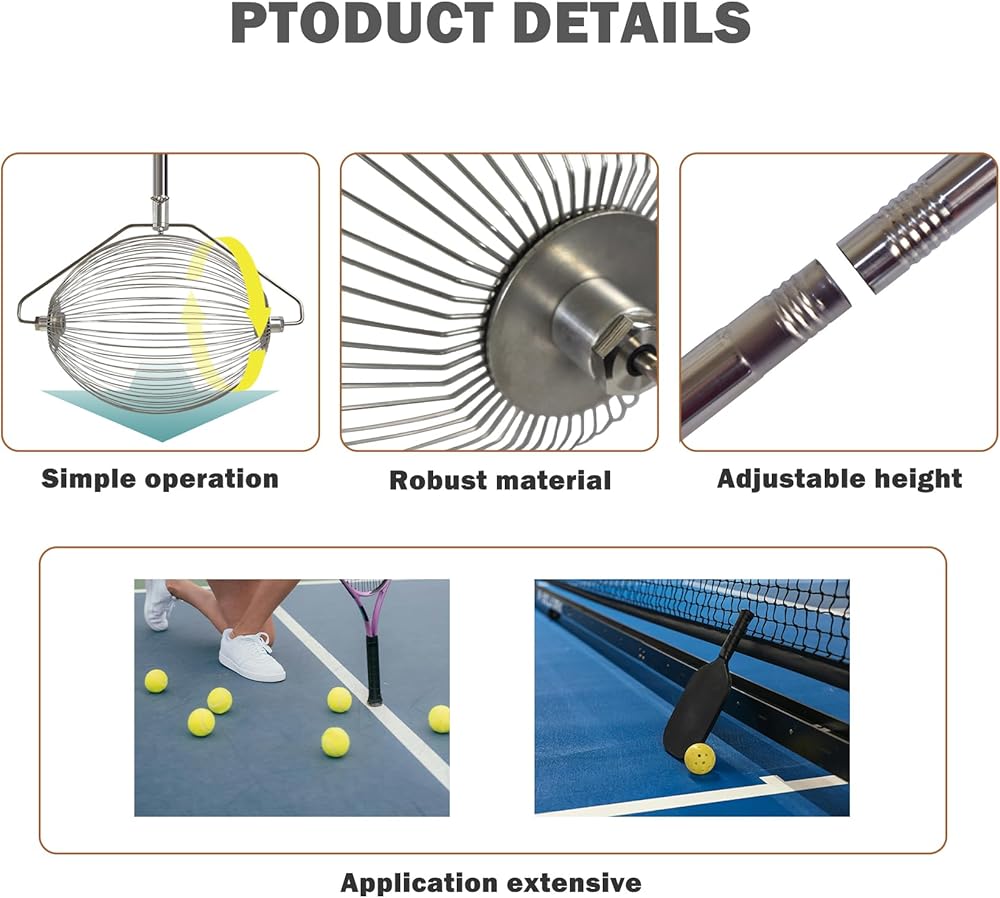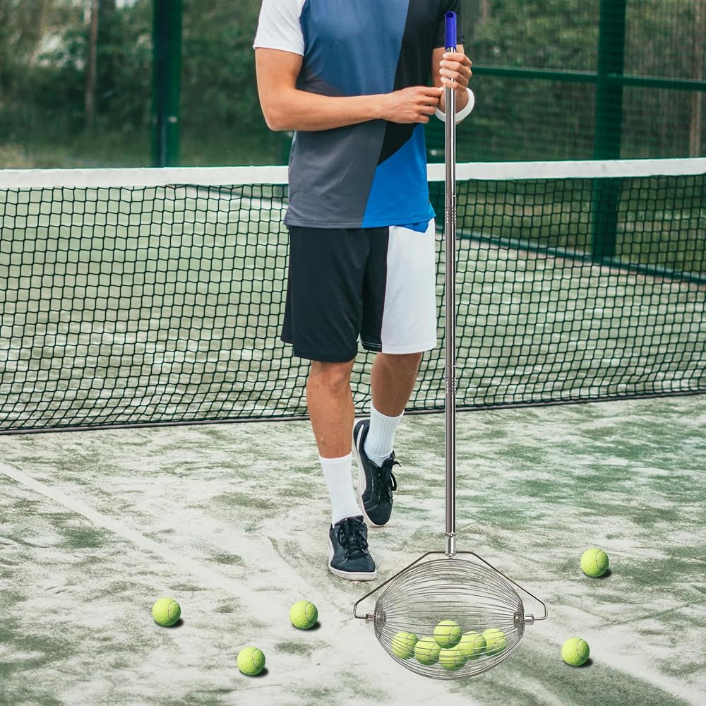 The ball cage of the tennis ball pick up is made of stainless steel. The connection between the ball and the rod is made of stainless steel snapper, fixed with screws. The whole is firm, anti-corrosive and anti-rust, and easy to clean.