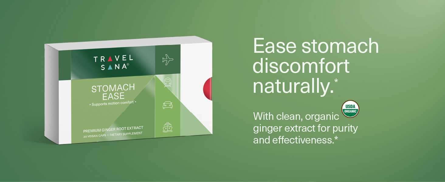 ملصق نباتي ونظيف: مصمم للمسافرين الذين يركزون على الصحة، Stomach Ease نباتي، وخالي من الغلوتين، وخالي من القمح، وخالي من اللاكتوز، وخالي من السكر، وخالي من الكافيين، وغير معدل وراثيًا.*
