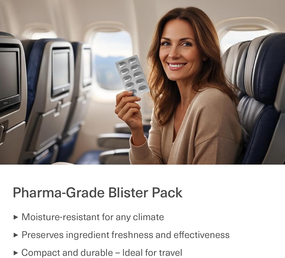 تغليف فقاعات جاهز للسفر: عبوات فقاعات مقاومة للماء خفيفة الوزن وصغيرة الحجم تحمي كل كبسولة من الرطوبة وتحافظ على نضارتها. مصممة بشكل مريح لتناسب بسهولة حقائب اليد وحقائب الظهر وأدوات السفر.