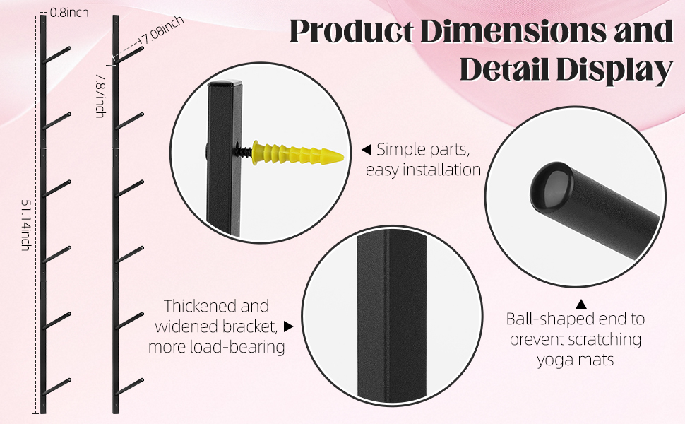 متين وقوي: حامل سجادة اليوجا هذا مصنوع من الفولاذ عالي القوة ومعزز بطبقة من المسحوق الأسود، قادر على دعم ما يصل إلى 30 رطلاً. يعزز التصميم الهندسي العلمي قدرة التحمل ويمنع انزلاق الوسادة بشكل فعال.