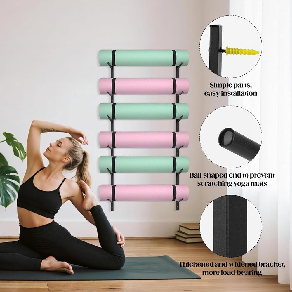 تعزيز المساحة والمزاج: يحول رف سجادة اليوجا الأنيق هذا أي غرفة إلى ملاذ هادئ - لتخزين المعدات مع إضفاء سحر بسيط. إنه اختيار مدروس لعشاق الصحة الذين يقدرون النظافة والانسجام.