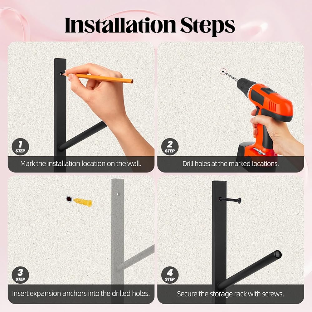 تركيب سريع وسهل: مجهز بمجموعة كاملة من ملحقات التثبيت (المسامير، براغي توسيع ألواح الجبس، الأقواس)، سهل إكمال التثبيت. ما عليك سوى وضع علامة على الموضع والثقب والتثبيت، ولا يتطلب التجميع. متوافق مع معظم أنواع الجدران والمسافات بين العارضات، ويمكن تحقيق التثبيت المستقر في دقائق معدودة.