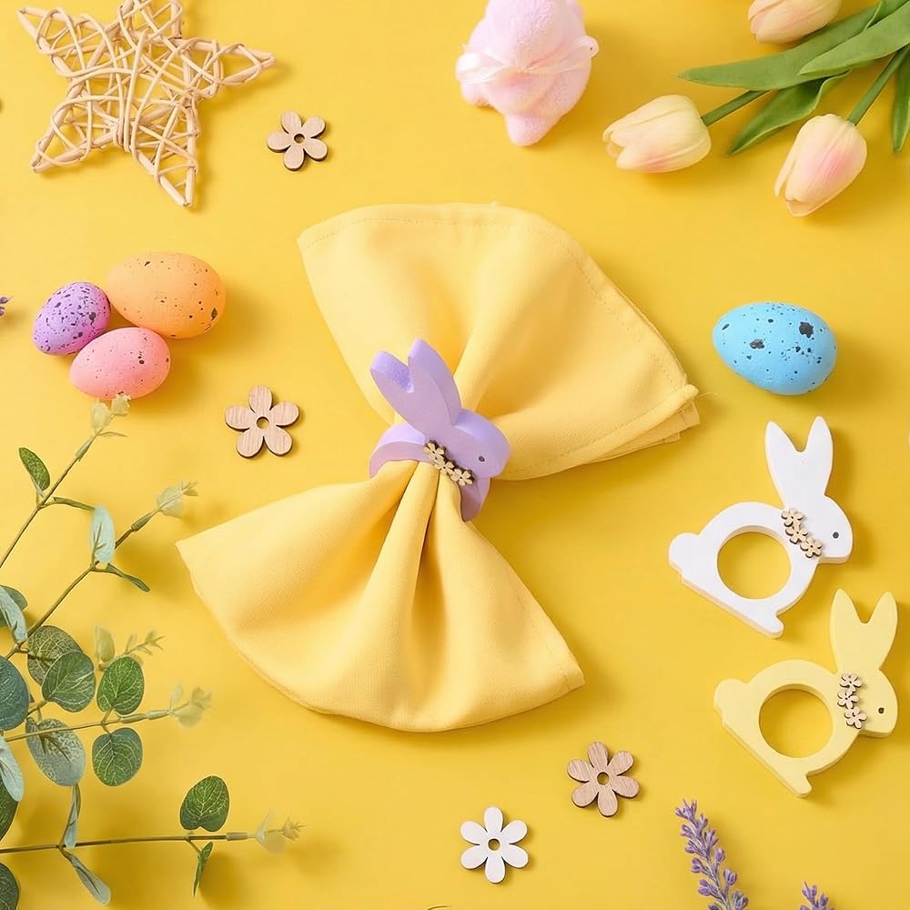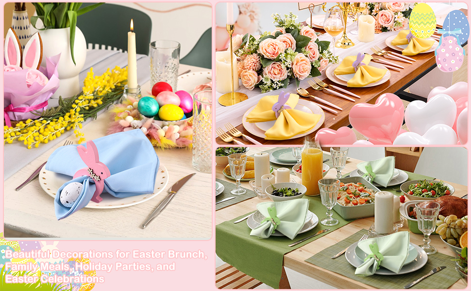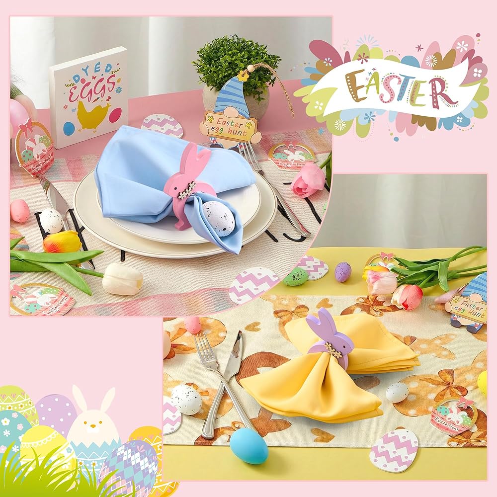 【ديكور متعدد الاستخدامات】: حلقات مناديل أرنب عيد الفصح هذه مثالية لمجموعة متنوعة من المناسبات، بما في ذلك زينة طاولة عيد الفصح، ووجبات الغداء الاحتفالية، والتجمعات العائلية، والاستخدام اليومي. إنها تضفي لمسة مبهجة وملونة على أي مكان، مما يخلق جوًا حيويًا واحتفاليًا.