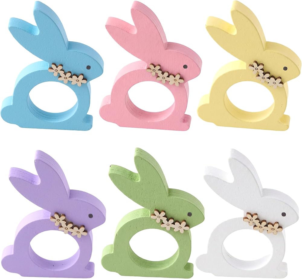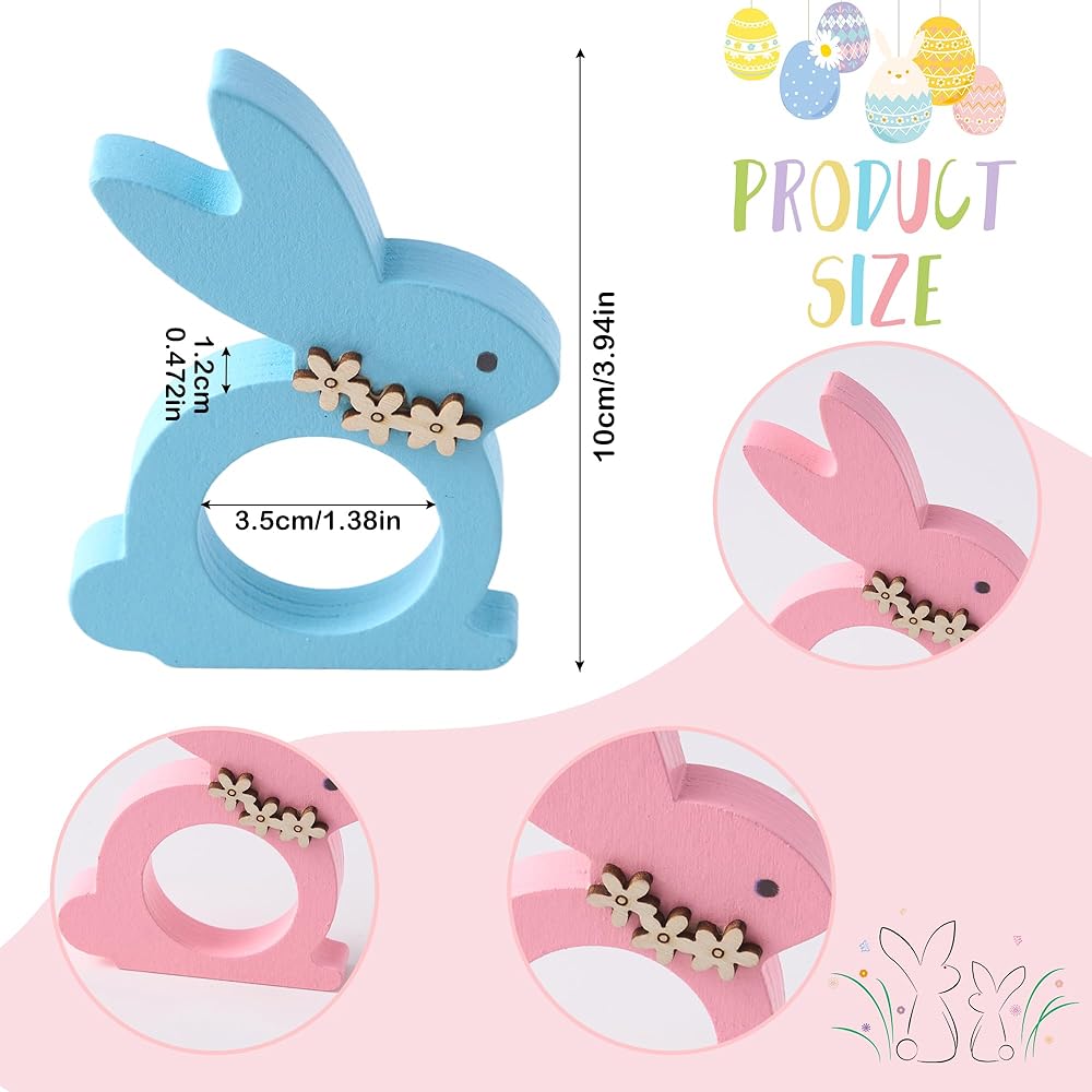 【روح عيد الفصح】: كل حلقة منديل أرنب عيد الفصح مصنوعة بتصميمات أرنب رائعة بألوان نابضة بالحياة. المواد المستخدمة موثوقة وطويلة الأمد، ومقاومة للكسر أو التشوه، مما يضمن متانتها. أضف حلقات المناديل هذه إلى طاولة عيد الفصح الخاصة بك واخلق ذكريات ممتعة مع العائلة والأصدقاء.
