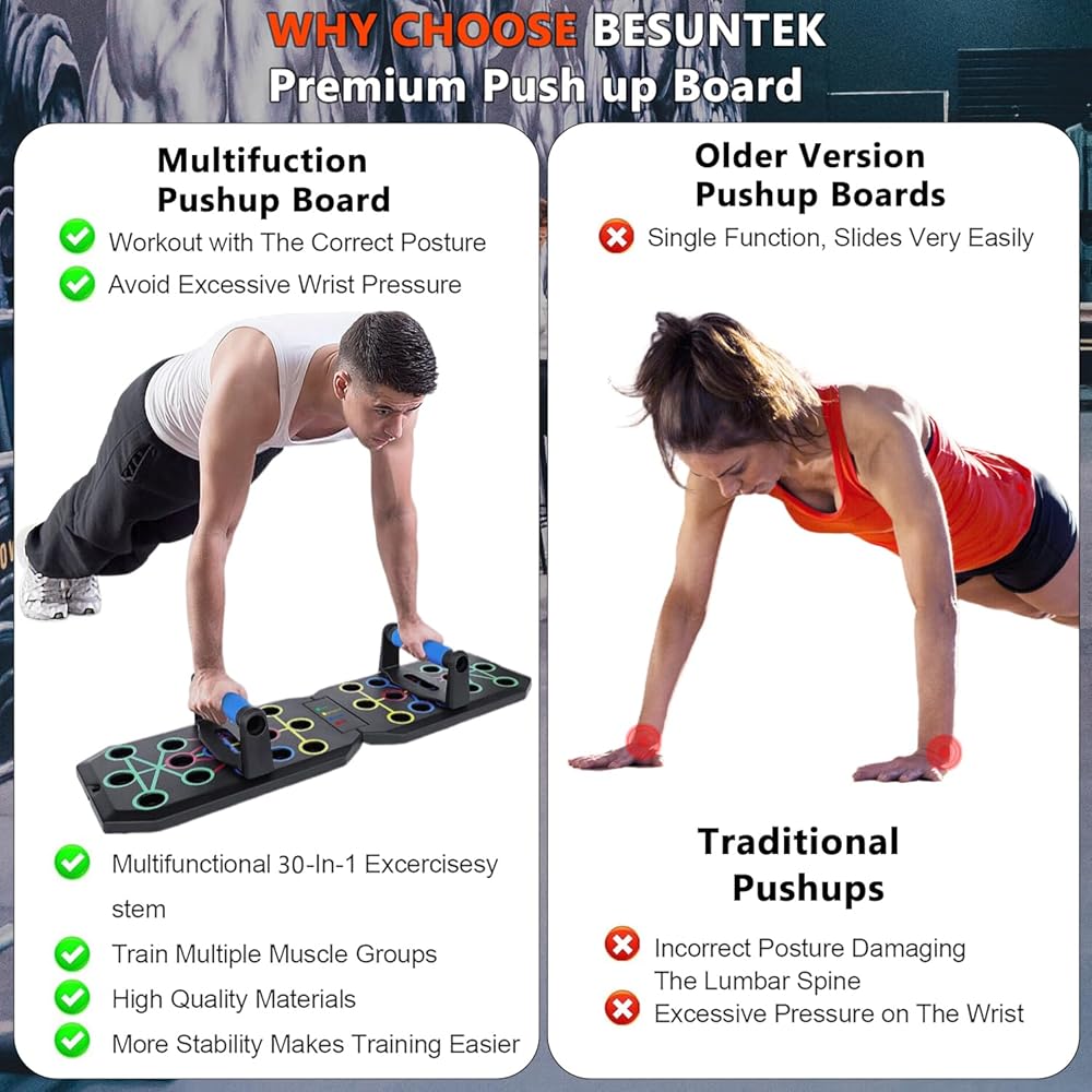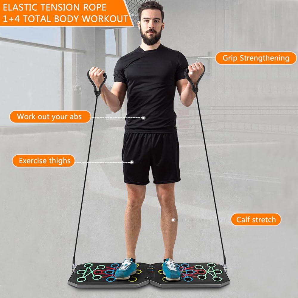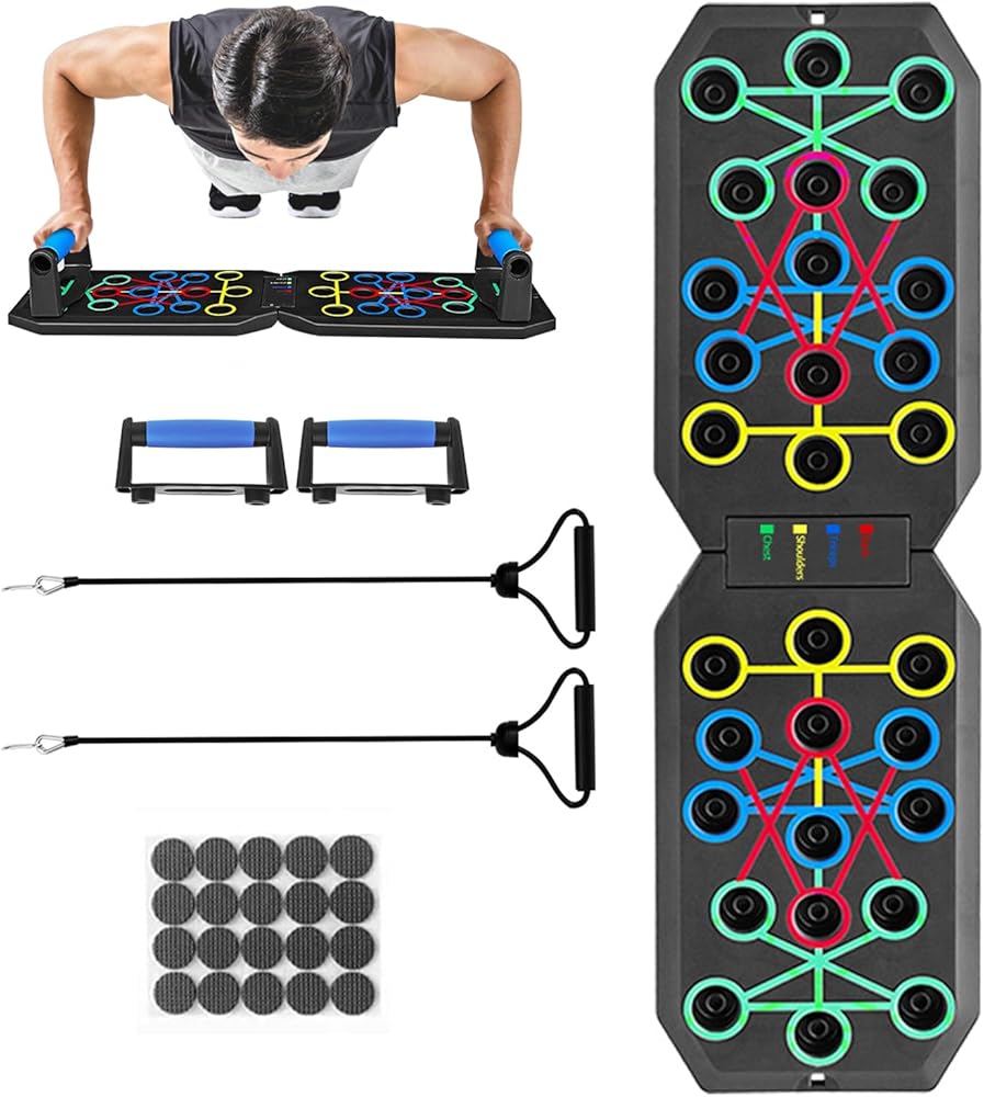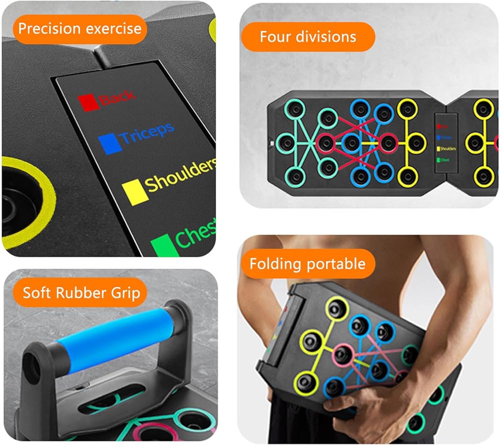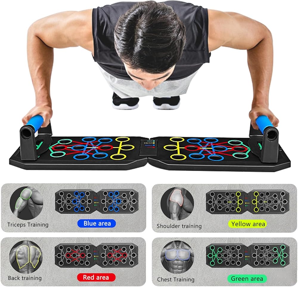 Transform your fitness routine with the Push Up Board Fitness – an essential tool for anyone looking to elevate their strength training. Designed to provide a versatile and effective workout, this multi-functional exercise board is perfect for targeting various muscle groups and achieving a full-body workout. The push up board features a unique color-coded handle system that simplifies your workout routine by guiding you through different push-up positions. Each color represents a specific angle and muscle group, allowing you to focus on your chest, shoulders, and triceps with ease. This targeted approach maximizes the benefits of each exercise, helping you achieve your fitness goals more efficiently. Built with high-quality, durable materials, this push up board is engineered to withstand rigorous workouts and offer long-lasting performance. Its sturdy construction ensures that you can rely on it for intense training sessions, whether you're exercising at home or in a gym setting. The adjustable handles are a standout feature, allowing you to customize your workout to suit your fitness level and goals. By changing the board's angles and positions, you can perform a variety of push-up variations that challenge different muscle groups and enhance your overall strength. With its compact and portable design, the Push Up Board Fitness is easy to store and take with you wherever you go. It's a practical addition to any home gym setup, offering flexibility and convenience for busy fitness enthusiasts. Whether you're a beginner or an advanced athlete, this push up board provides an efficient and effective workout solution that fits seamlessly into your lifestyle. Elevate your workout and experience the benefits of a comprehensive strength training routine with the Push Up Board Fitness. Invest in this versatile, durable, and portable exercise board today and take the first step toward achieving your fitness goals.
