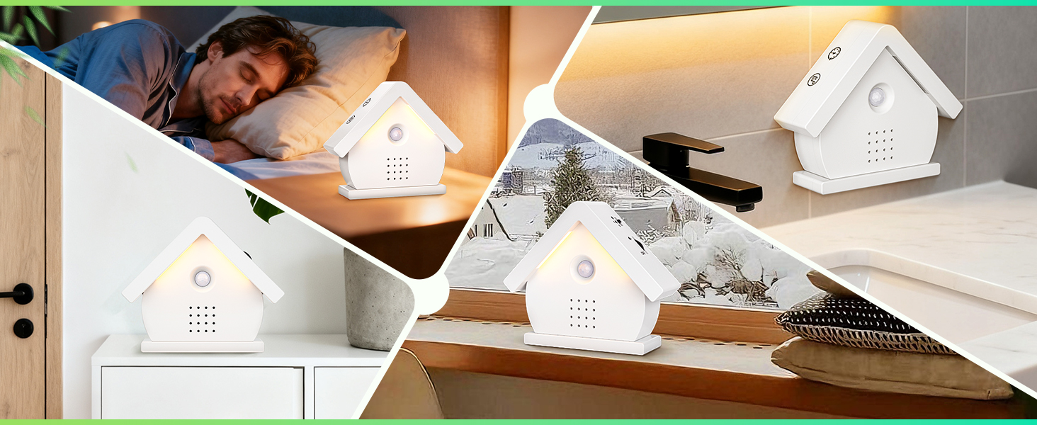 【سهلة الاستخدام وهدية مثالية】 قم بتحميل 3 بطاريات AAA (غير متضمنة)، قم بتشغيل زر التشغيل/الإيقاف، سيتم تنشيط صندوق زقزقة الطيور الخاص بنا تلقائيًا بواسطة مستشعر الحركة. تتيح لك الاستمتاع بأجواء الاسترخاء أينما كنت، وهي مثالية للاسترخاء اليومي في غرفة النوم أو غرفة المعيشة أو الحمام أو الردهة. كما أنها هدية مثالية لنفسك أو لأصدقائك وعائلتك.