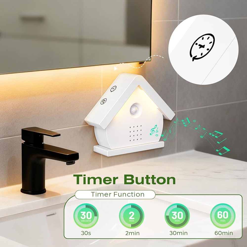 【إعدادات حجم ومؤقت قابلة للتعديل】قم بتخصيص شريط الصوت الخاص بك ليناسب احتياجاتك من خلال حجم قابل للتعديل (0-90 ديسيبل) وخيارات مؤقت مرنة (30 ثانية/2 دقيقة/30 دقيقة/60 دقيقة). بمجرد اكتمال الإعدادات، سيحتفظ Birdbox بالإعدادات في كل مرة يتم تنشيطه حتى نفاد البطارية.