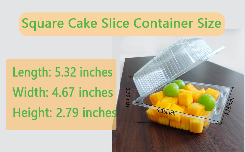 يحتوي صندوق شرائح الكيك على غطاء مفصلي مزود بإبزيمين في الطرف الأمامي، مما يحافظ على الحاوية البلاستيكية محكمة الغلق ويحافظ على الطعام طازجًا وآمنًا أثناء النقل، مما يمنع تسرب الطعام العرضي. والإبزيم سهل الفتح.