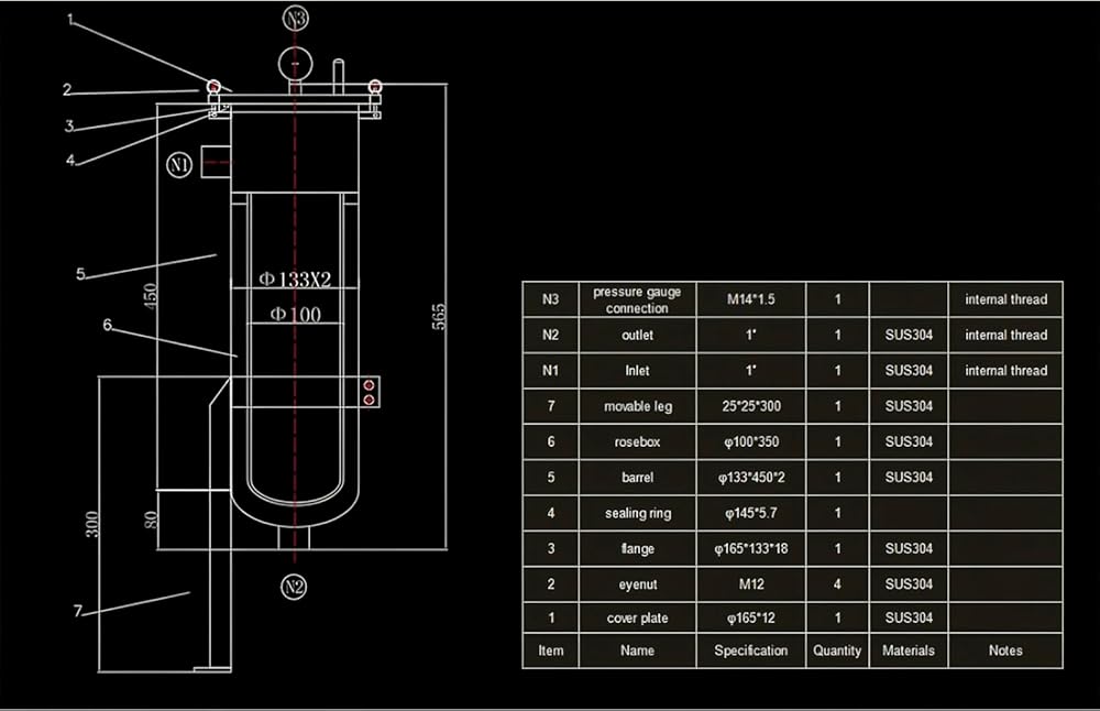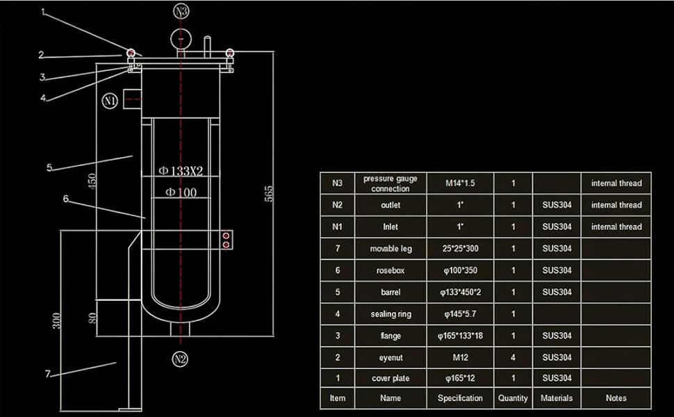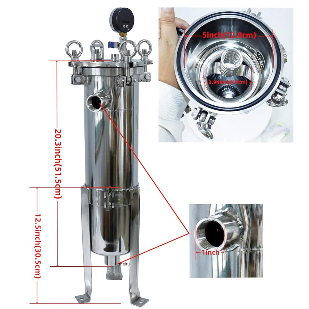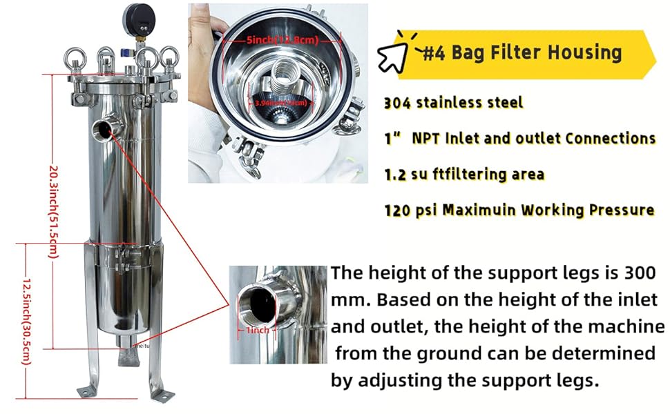 المعلمة: وصلات مدخل ومخرج NPT 1 بوصة، منطقة ترشيح 1.2 قدم مربع، أقصى ضغط عمل 120 رطل لكل بوصة مربعة.