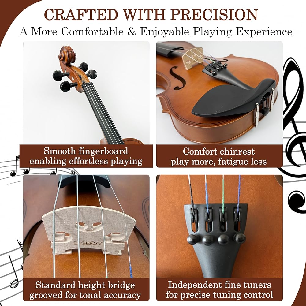 🎻 ضبط ثابت وأداء ثابت: تم تصميم كمان DIGERVY 4/4 هذا لضبط يمكن الاعتماد عليه، ويتميز بأوتار فولاذية سريعة الاستجابة وأوتاد من خشب الأبنوس مناسبة بدقة لتعديل درجة الصوت بشكل ثابت. يمكن للمبتدئين تحقيق ضبط دقيق بسرعة عبر تطبيق الهاتف الذكي، مما يضمن إعدادًا سلسًا وسهلاً. يسمح لك الجسر المثبت مسبقًا باحترافية ببدء اللعب على الفور مع ضبط بسيط فقط، مما يضمن الاستمتاع بنغمة واضحة ومتوازنة من أول نغمة.