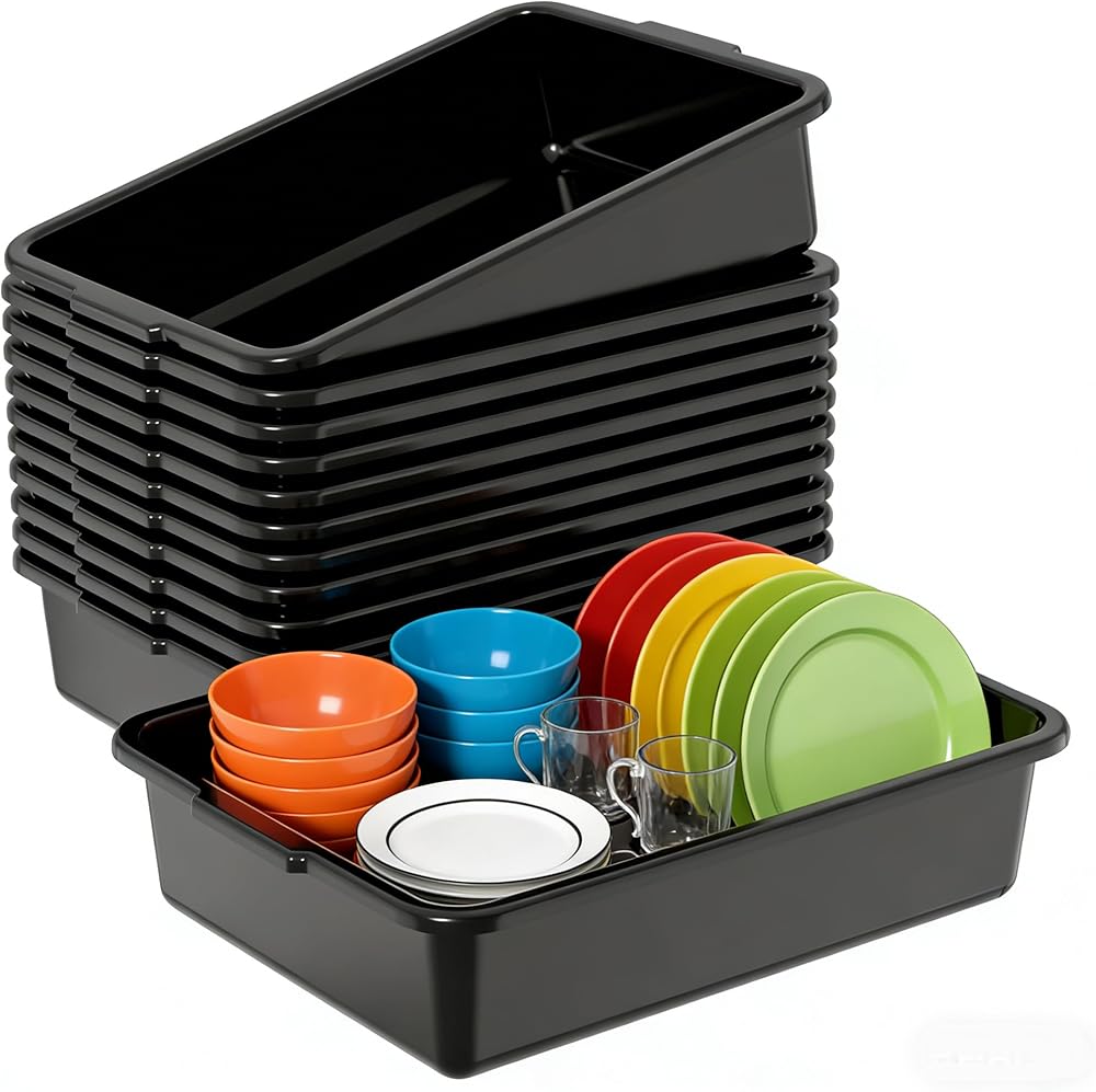 12 Pcs Plastic Bus Tubs 13L Bus Tubs, Large Food Service Box Restaurant Bus Tubs Dish Washing Box for Restaurant, Kitchen, Cafeteria Organization Cleaning