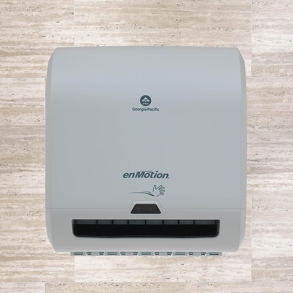 The enMotion® Impulse® 8” 1-Roll Automated Touchless Paper Towel Dispenser enhances your facilities with hands-free, whisper-quiet, jam-free dispensing in a smaller profile that's ideal for areas with space constraints. One set of batteries dispenses for 4 years on average, helping reduce the need for maintenance. Hygienic, reliable and efficient, this commercial paper towel dispenser is ideal for break rooms, medical and dental offices and back-of-house foodservice areas. Shown here in gray, this wall-mounted paper towel dispenser is also available in white (59437A) and black (59498A) to coordinate with any decor. This dispenser uses the same refill options as the enMotion® Stainless Recessed Paper Towel Dispenser (59466A) for inventory efficiency. The enMotion® Impulse® 8" 1-Roll Automated Touchless Paper Towel Dispenser works exclusively with enMotion® 8" Premium Paper Towel Rolls (89410), 8" White Paper Towel Rolls (89420, 89430) or 8" Brown Paper Towel Rolls (89440). Our recycled paper towels offer sustainable choices that meet or exceed EPA standards and can help earn LEED® credits.
