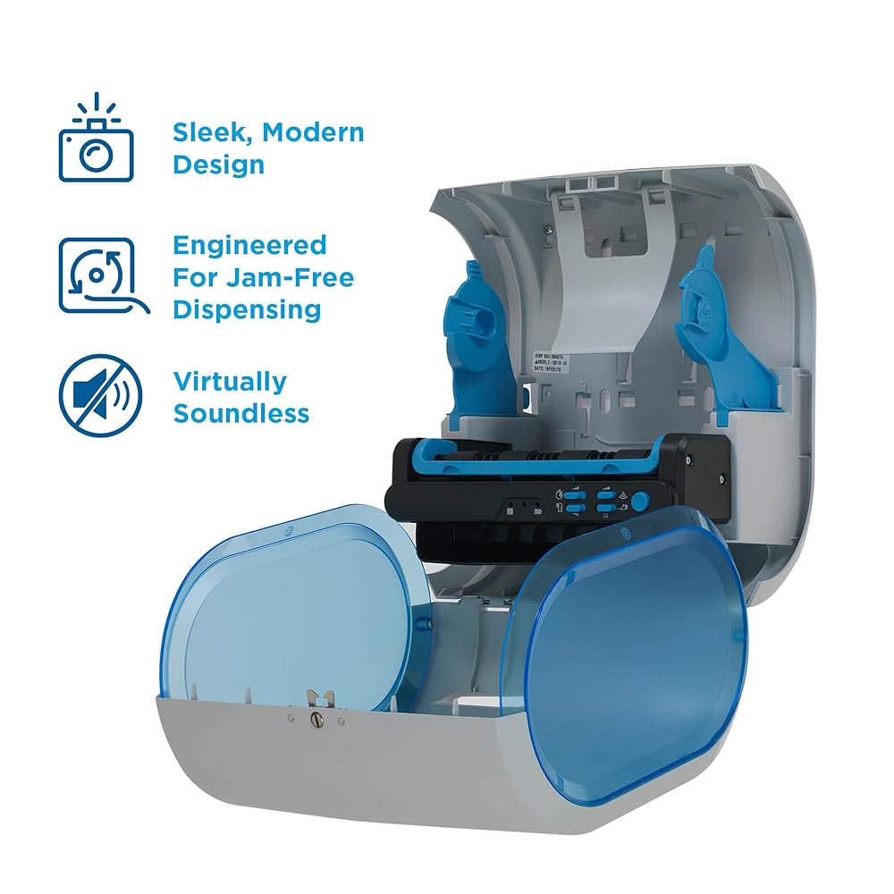HELPS REDUCE WASTE with customizable settings including delayed dispensing, sheet length options and dispense method (hang mode vs. wave mode)