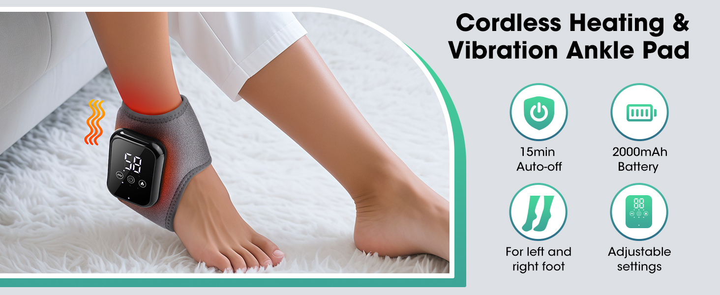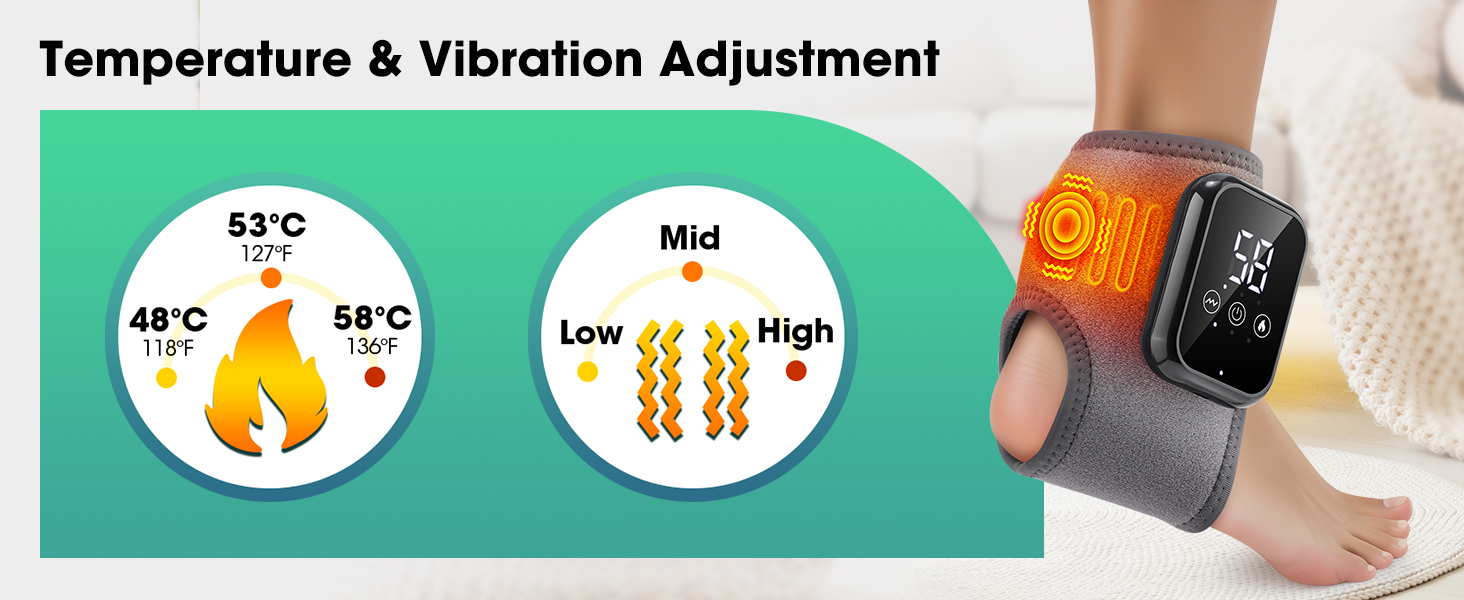 الاستخدام الآمن والفعال: تم تصميم وسادة التسخين هذه للكاحل مع وضع رفاهيتك في الاعتبار، وتتميز بنظام تحكم متطور في درجة الحرارة NTC للحفاظ على حرارة ثابتة وآمنة ومنع الحروق. إنه قابل للتعديل بالكامل ليناسب الكاحلين الأيسر والأيمن. للحصول على أفضل النتائج، نوصي بالبدء بأقل إعداد للحرارة. يضمن التصميم المركز توصيل الحرارة العلاجية والاهتزاز إلى المكان الذي تحتاج إليه بشدة من أجل استرخاء فعال للكاحل.